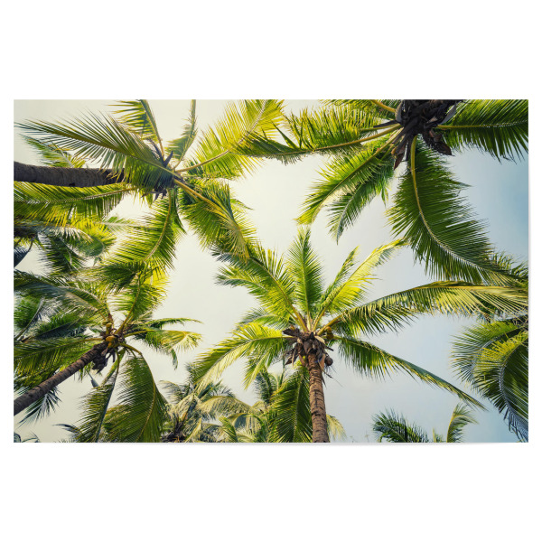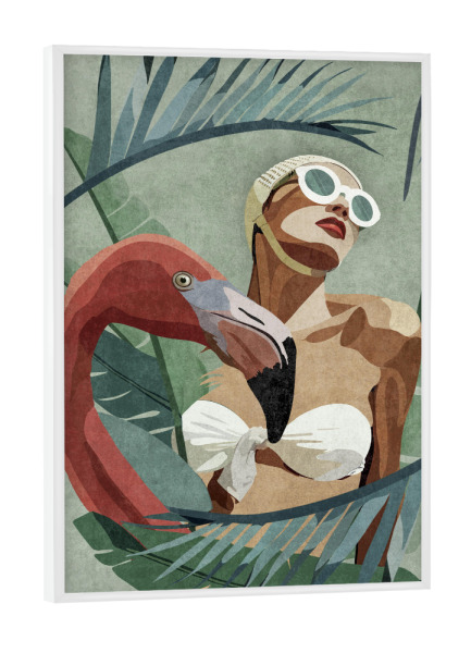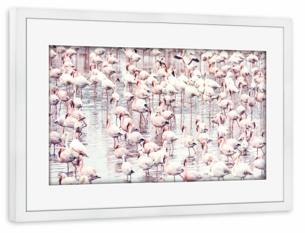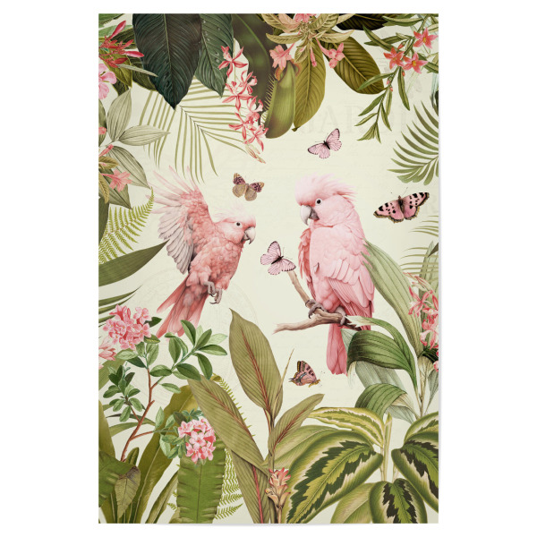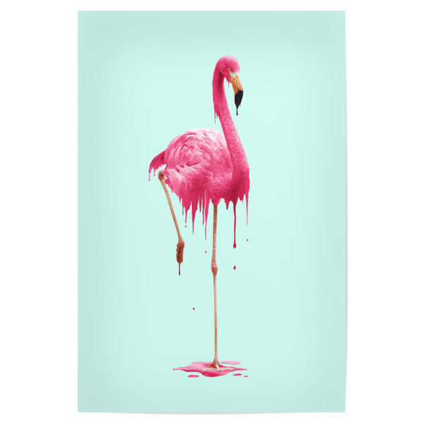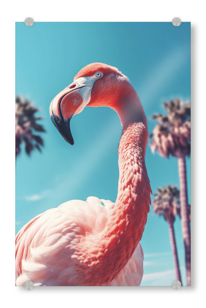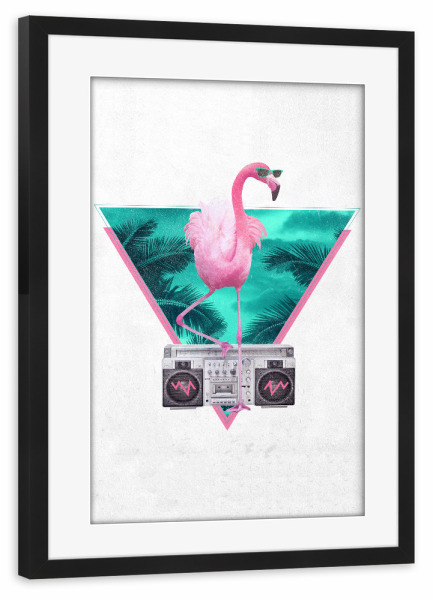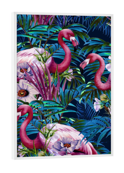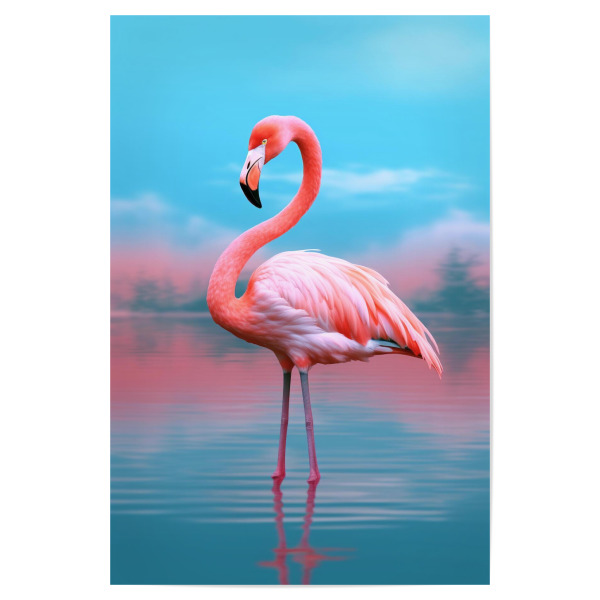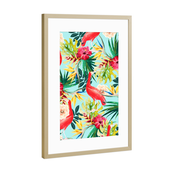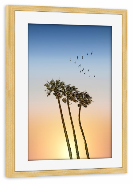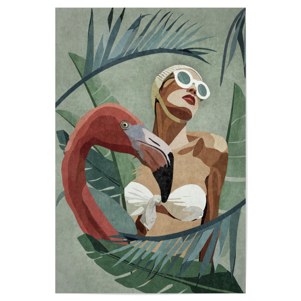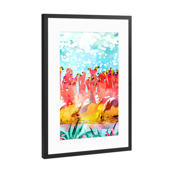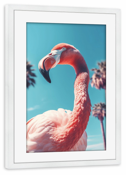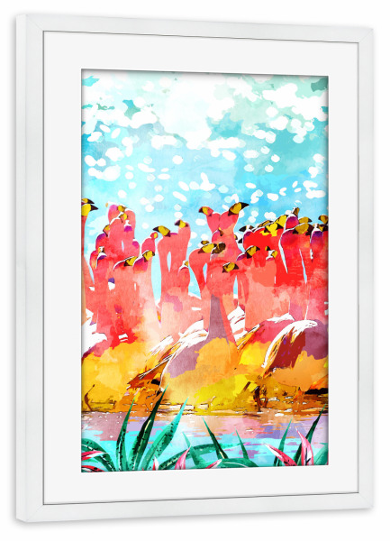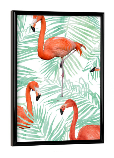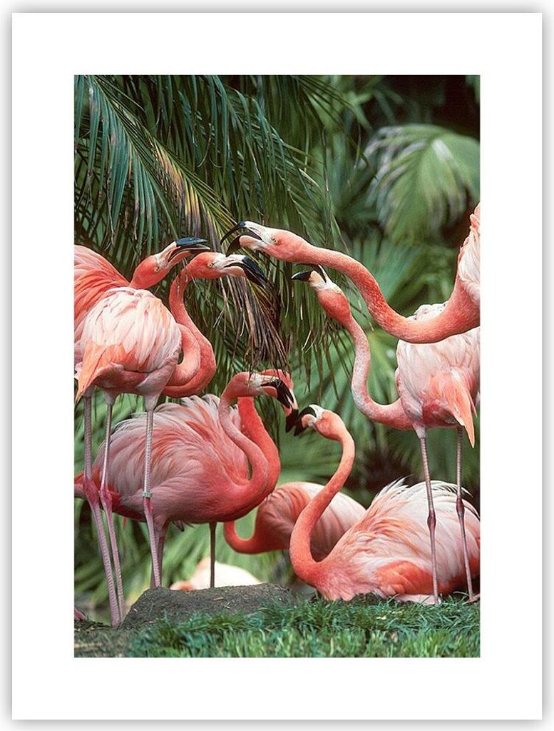 Poster - Poster ohne Rahmen - Palmen Herde Flamingos - 30x40 cm - Wand Bild - Wanddeko - Wandbilder - Kunstposter - Wandposter - Bilder - Kunstdruc...