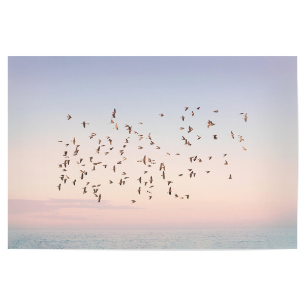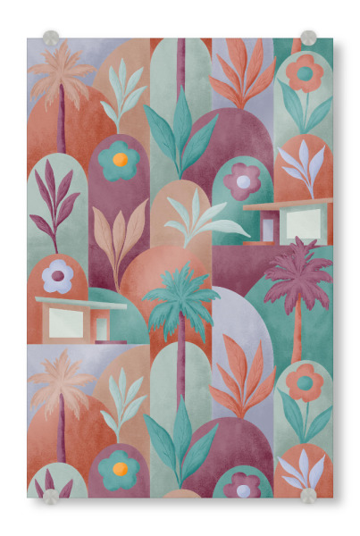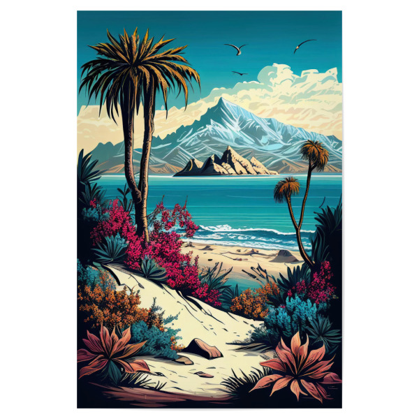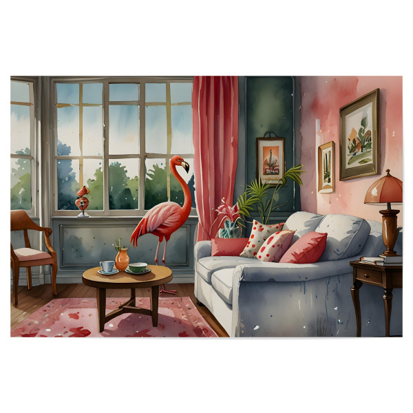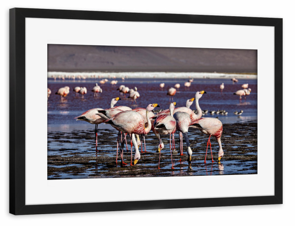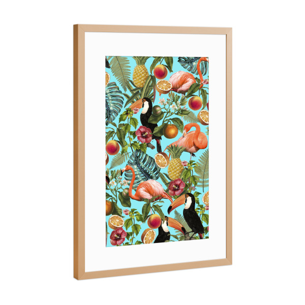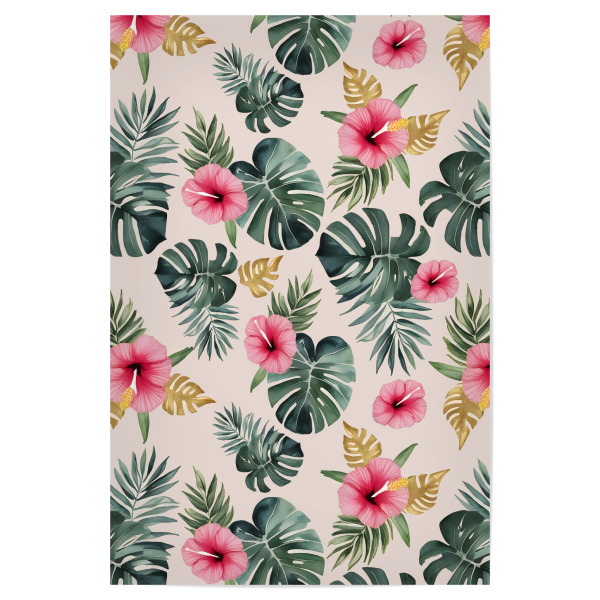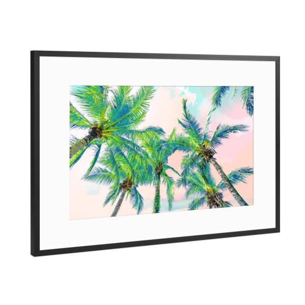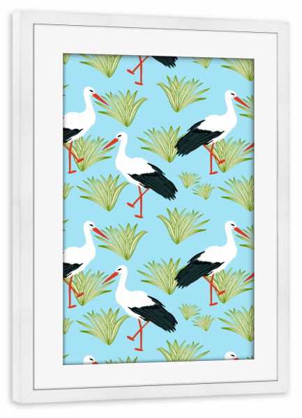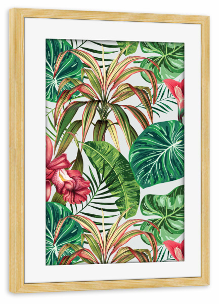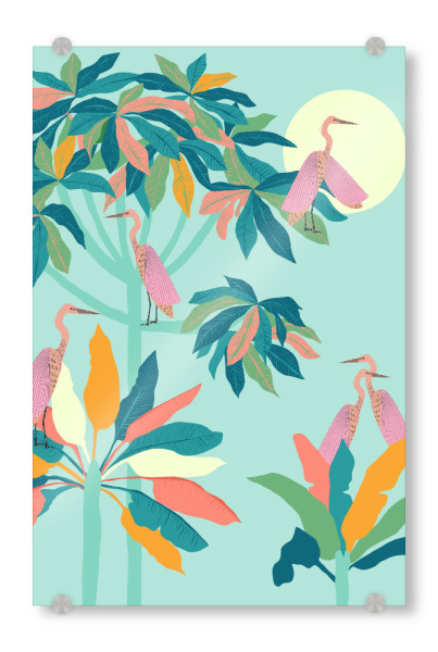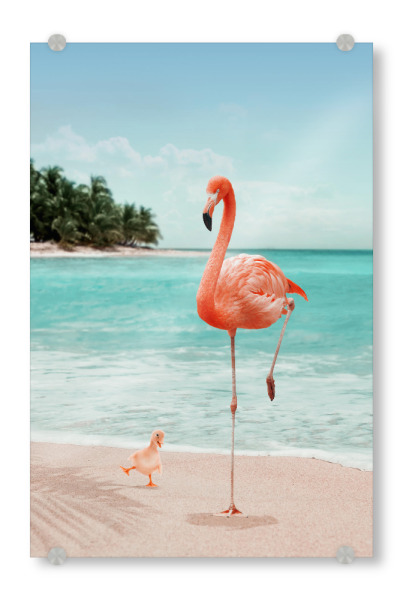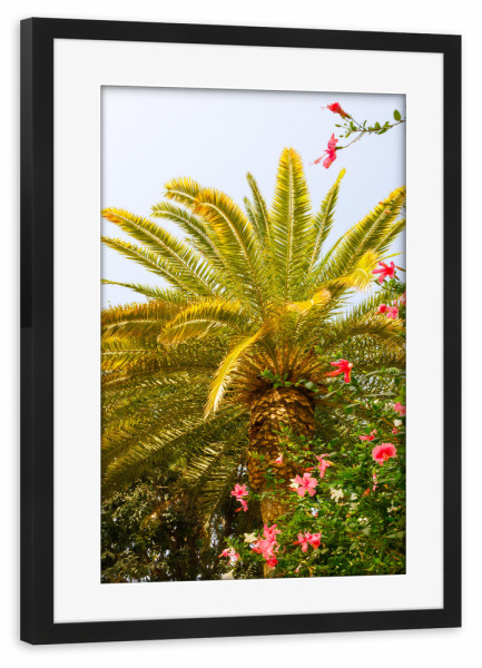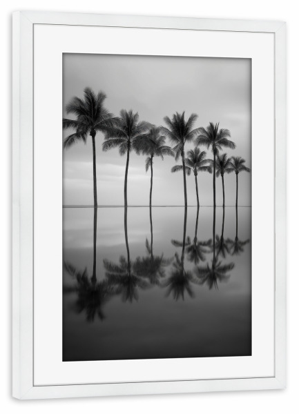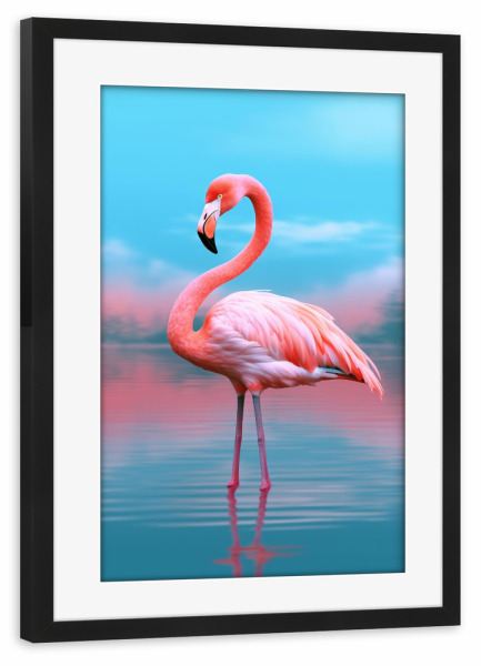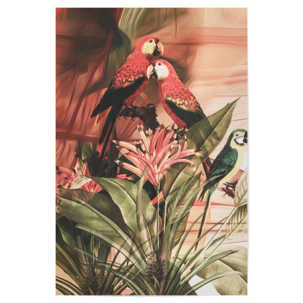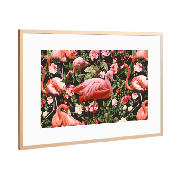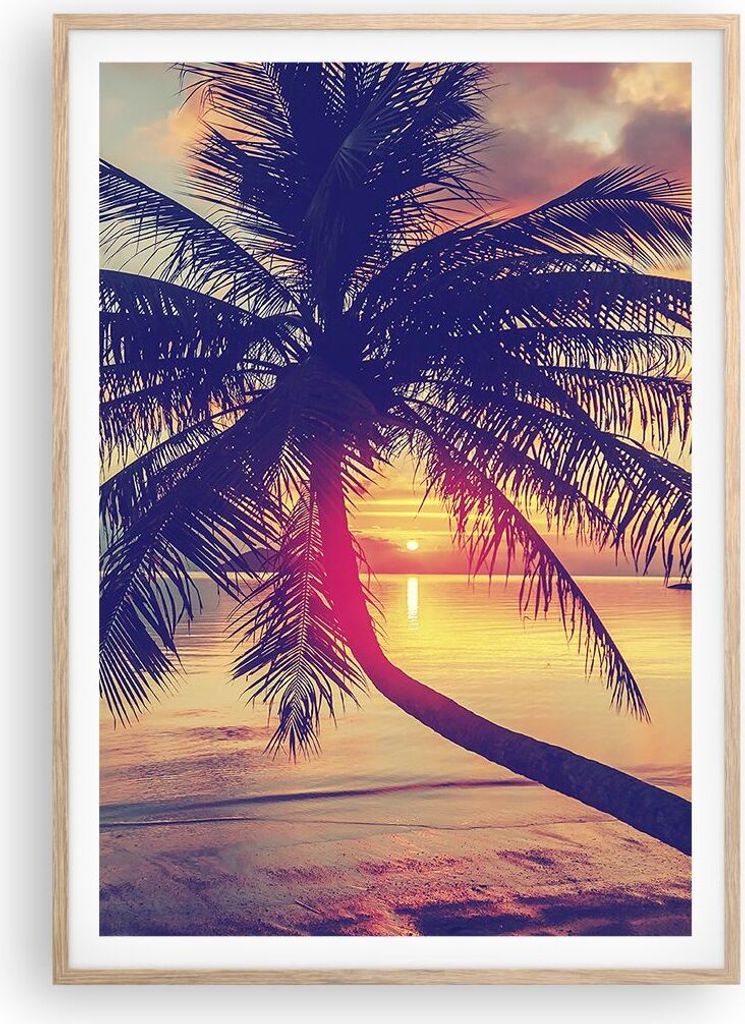 Poster - Poster ohne Rahmen - Palmen Herde Flamingos - 30x40 cm - Wand Bild - Wanddeko - Wandbilder - Kunstposter - Wandposter - Bilder - Kunstdruc...