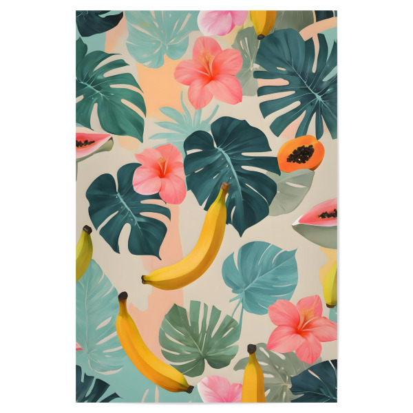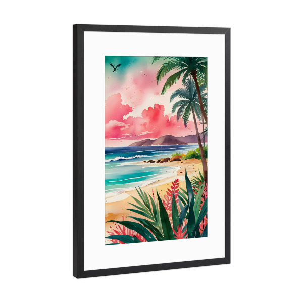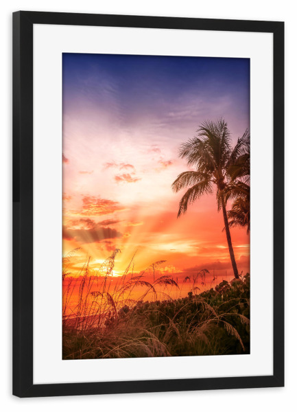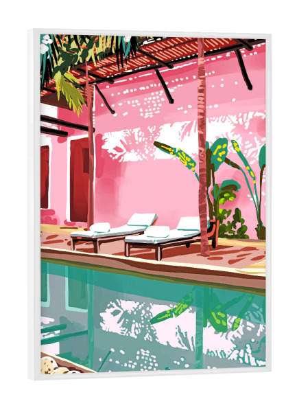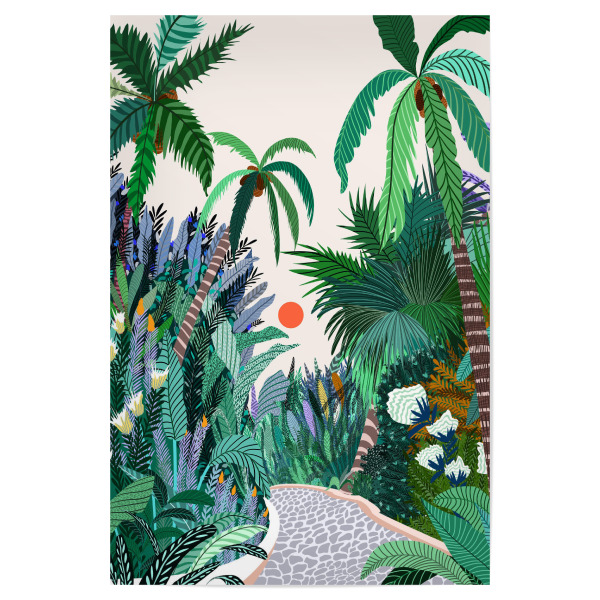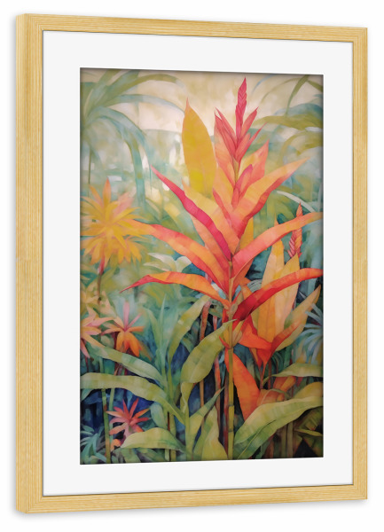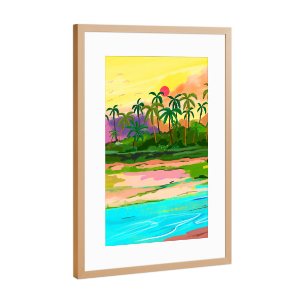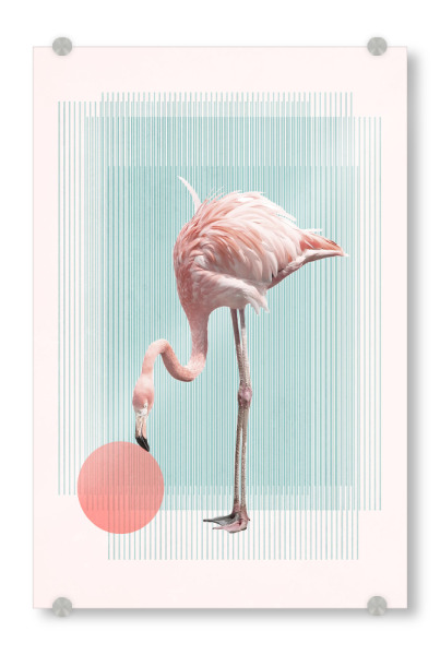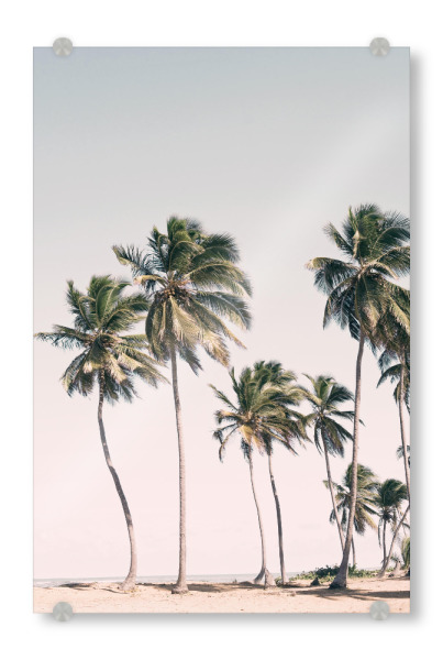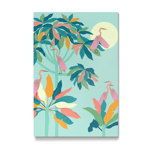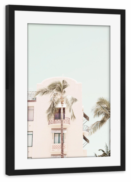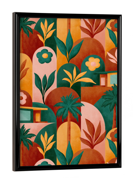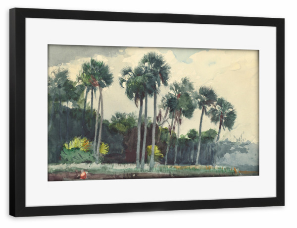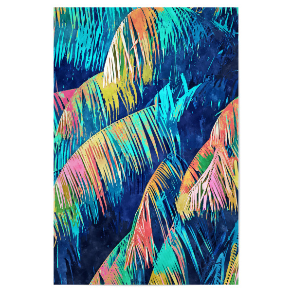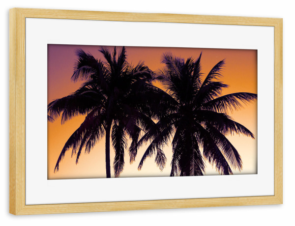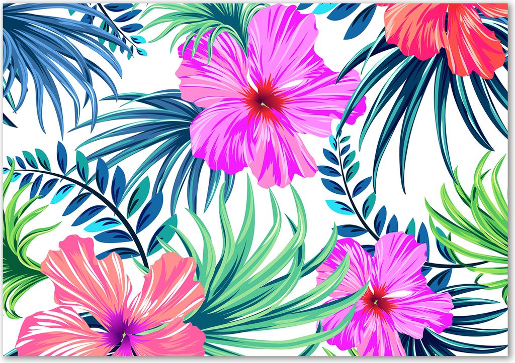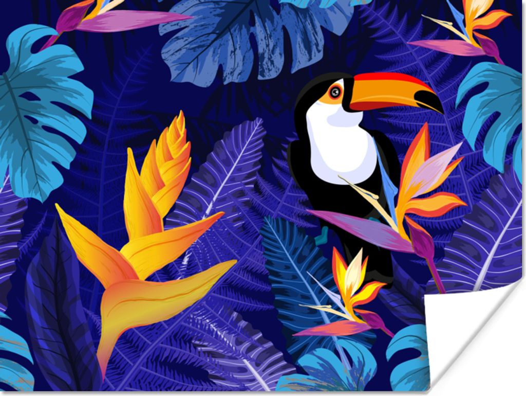 Poster - Poster ohne Rahmen - Palmen Herde Flamingos - 30x40 cm - Wand Bild - Wanddeko - Wandbilder - Kunstposter - Wandposter - Bilder - Kunstdruc...