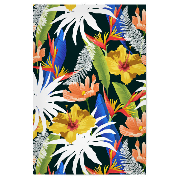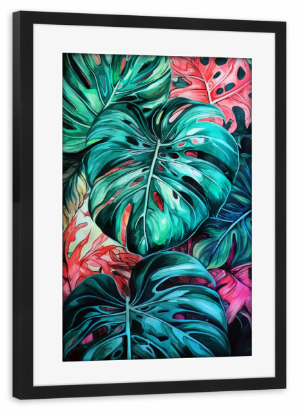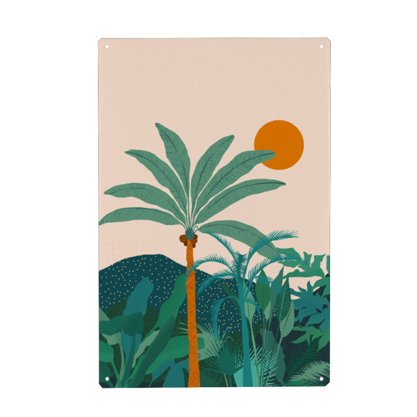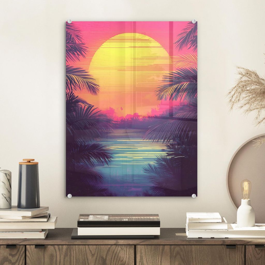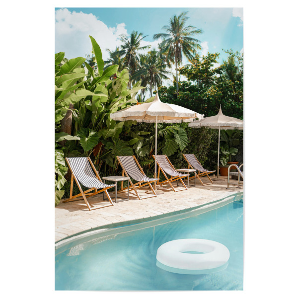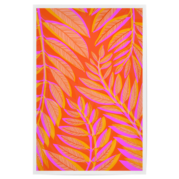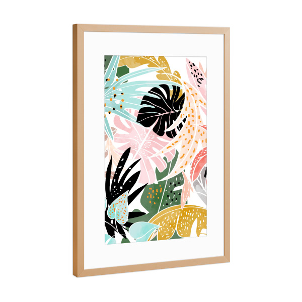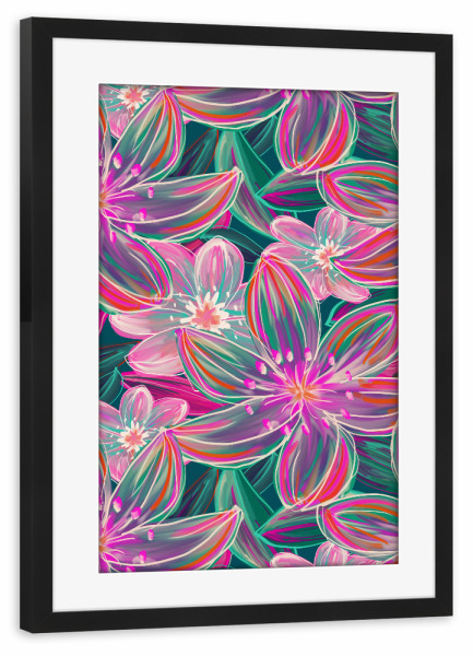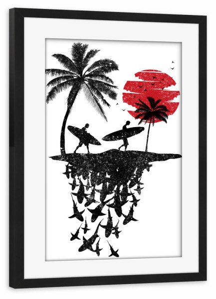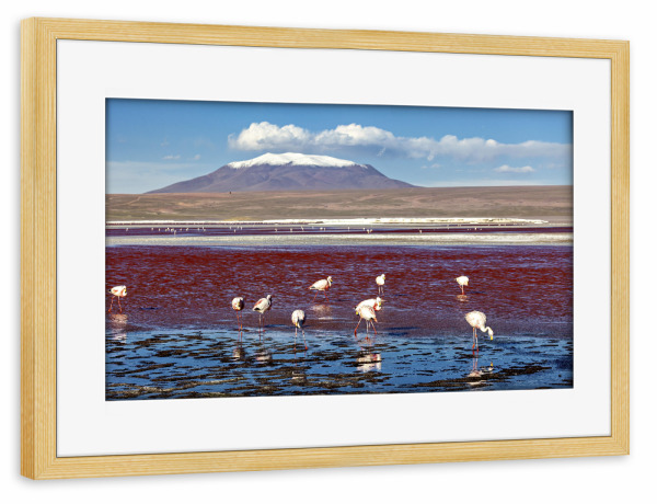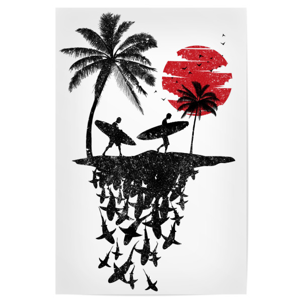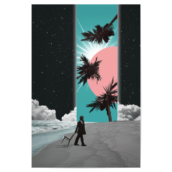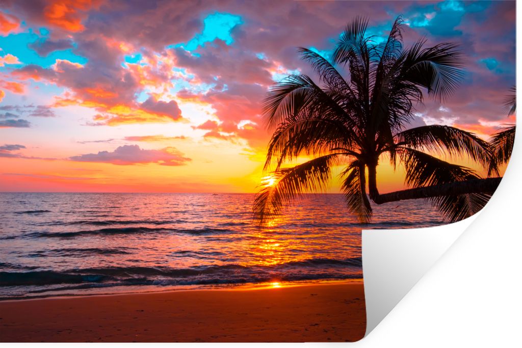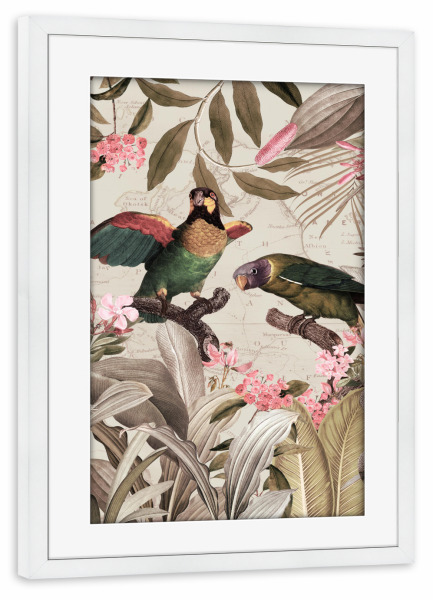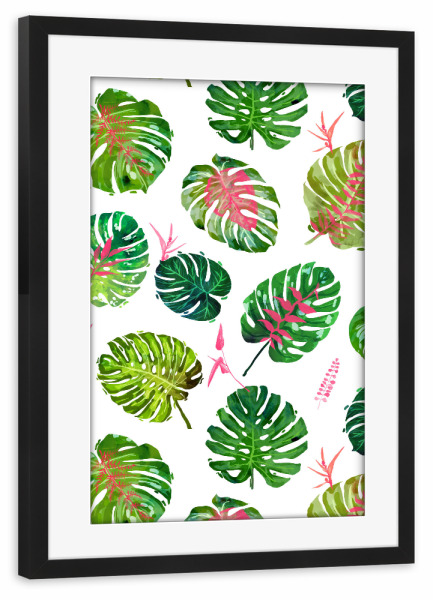 Poster - Poster ohne Rahmen - Palmen Herde Flamingos - 30x40 cm - Wand Bild - Wanddeko - Wandbilder - Kunstposter - Wandposter - Bilder - Kunstdruc...