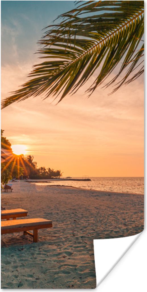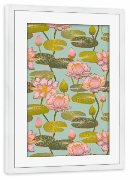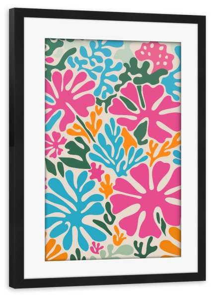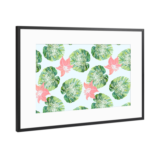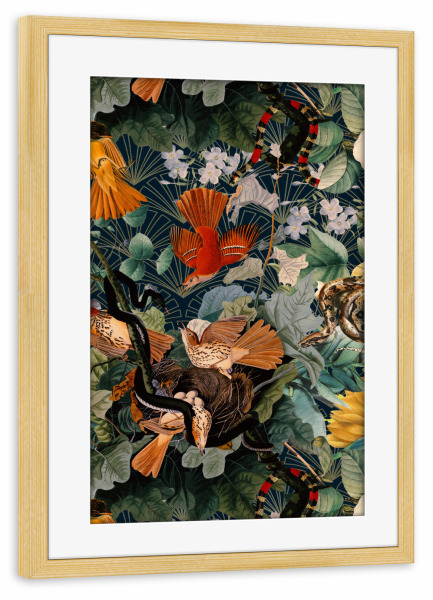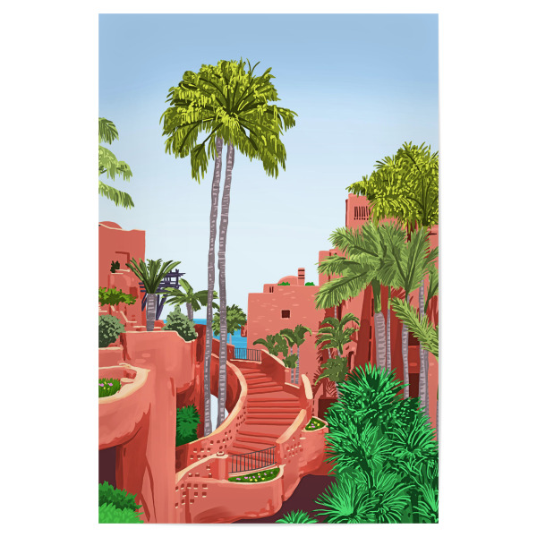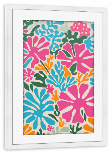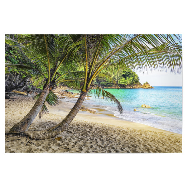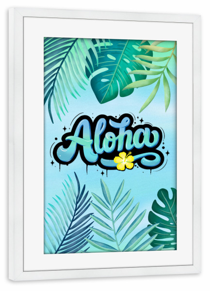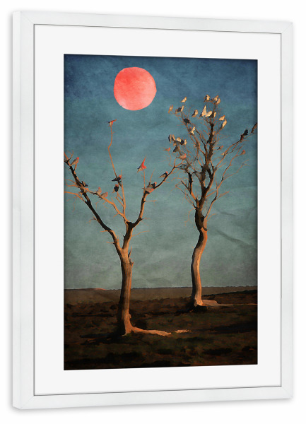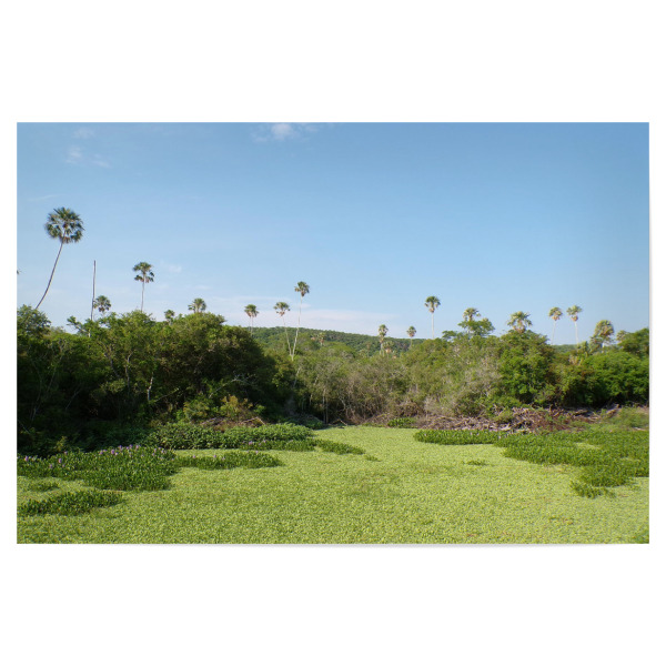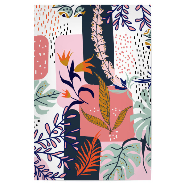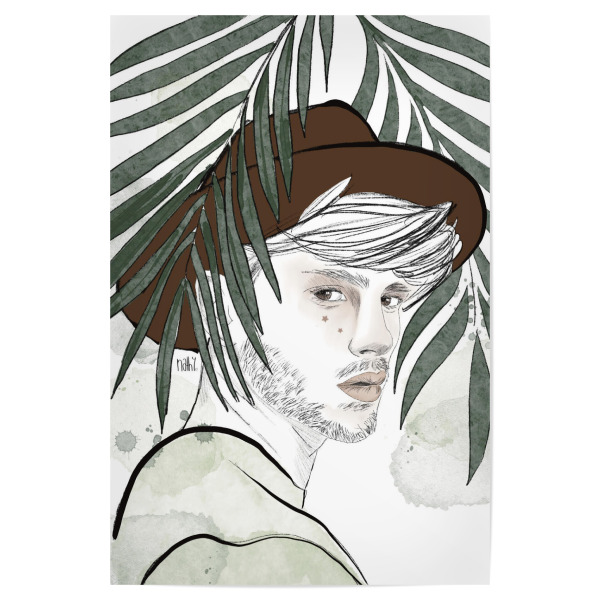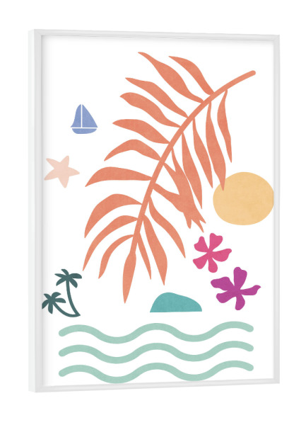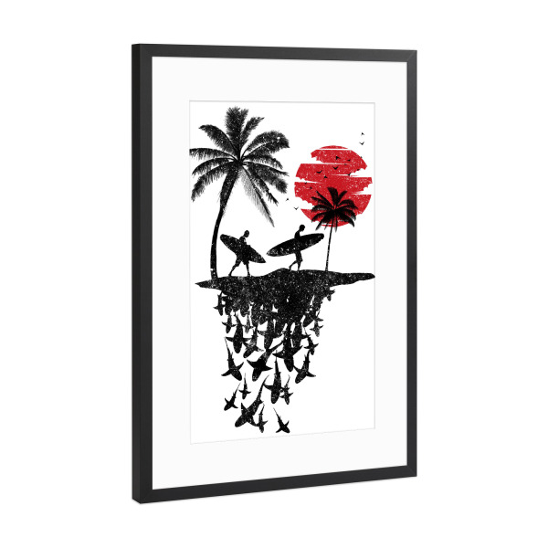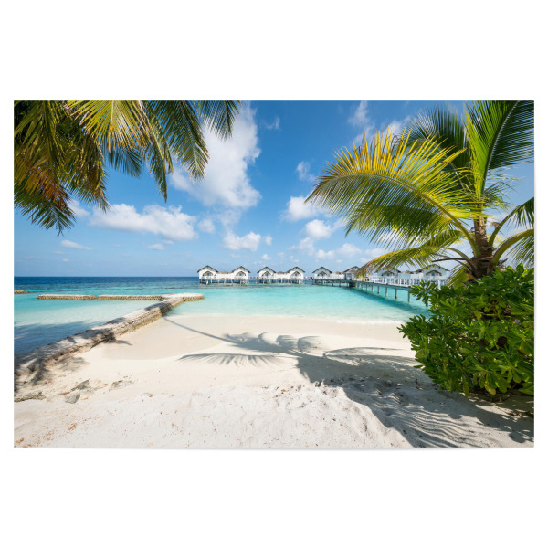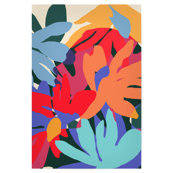 Poster - Poster ohne Rahmen - Palmen Herde Flamingos - 30x40 cm - Wand Bild - Wanddeko - Wandbilder - Kunstposter - Wandposter - Bilder - Kunstdruc...