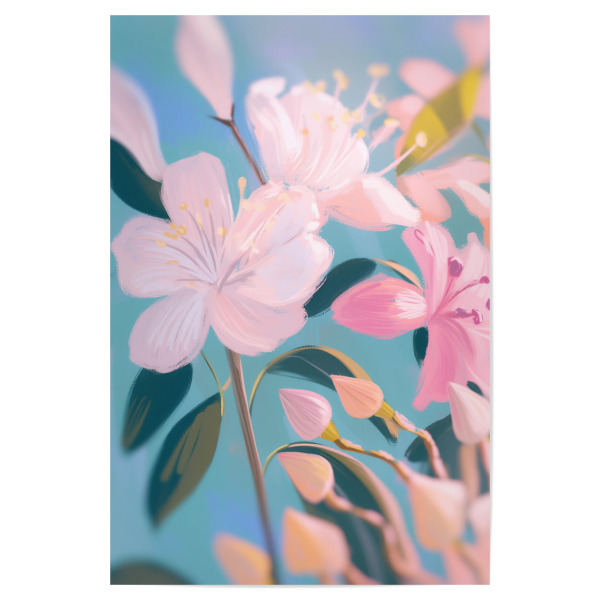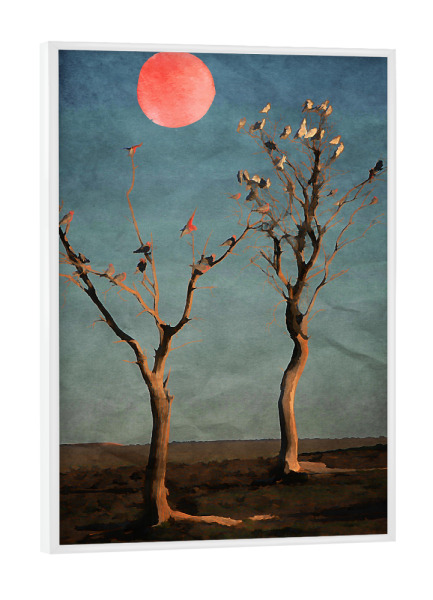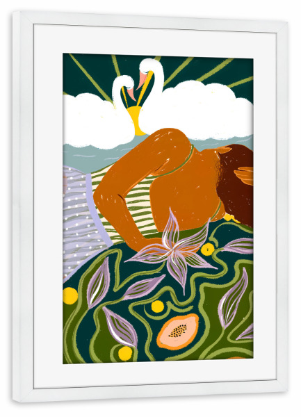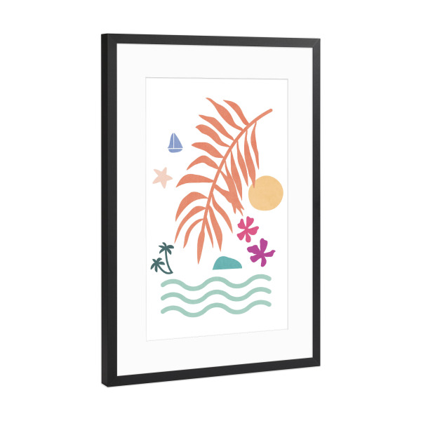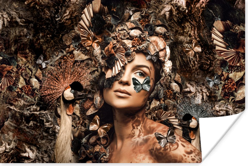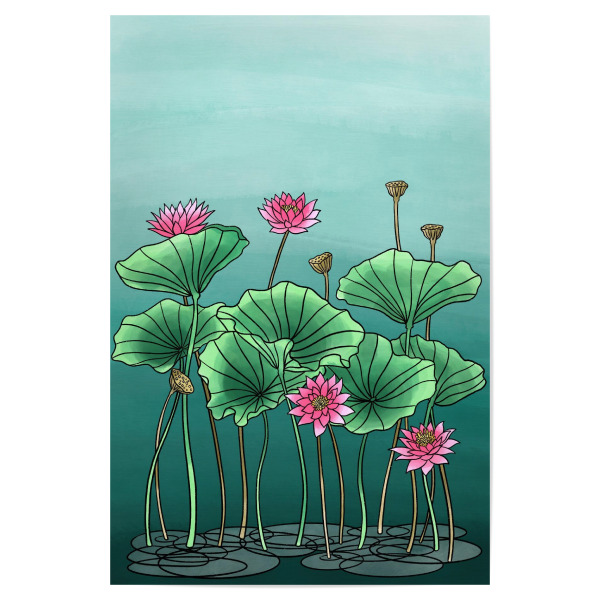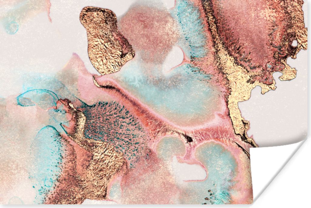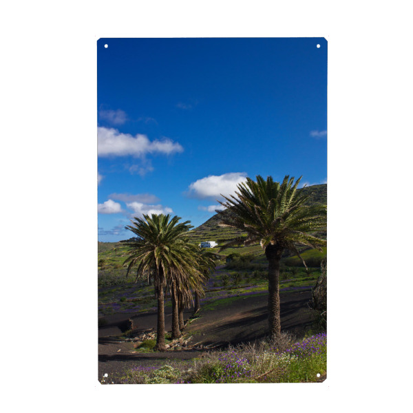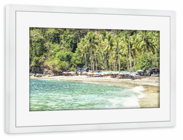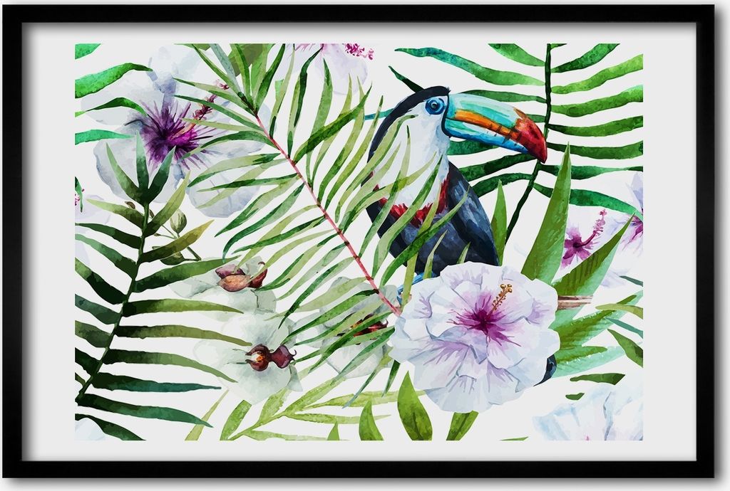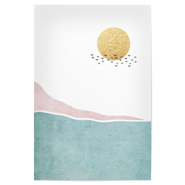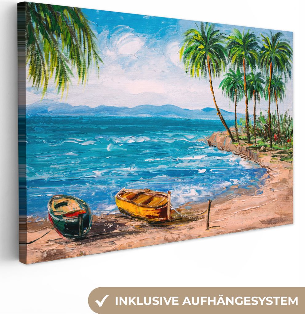 Poster - Poster ohne Rahmen - Palmen Herde Flamingos - 30x40 cm - Wand Bild - Wanddeko - Wandbilder - Kunstposter - Wandposter - Bilder - Kunstdruc...