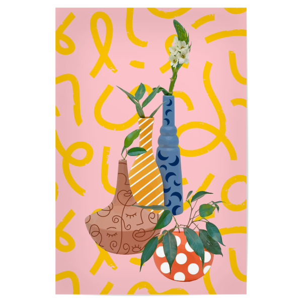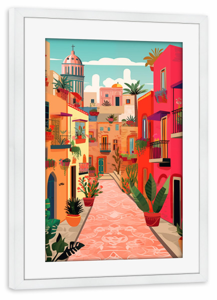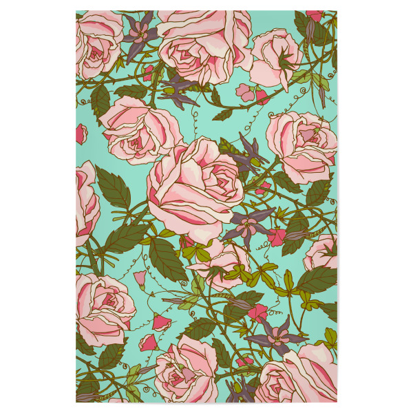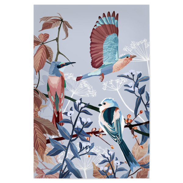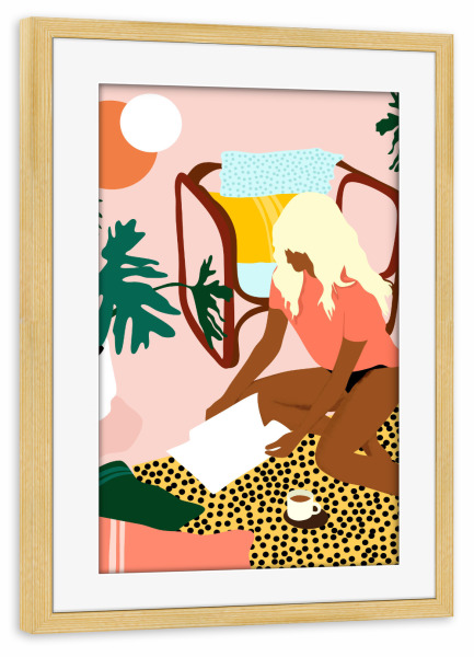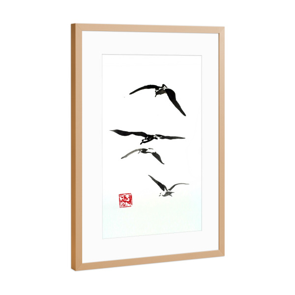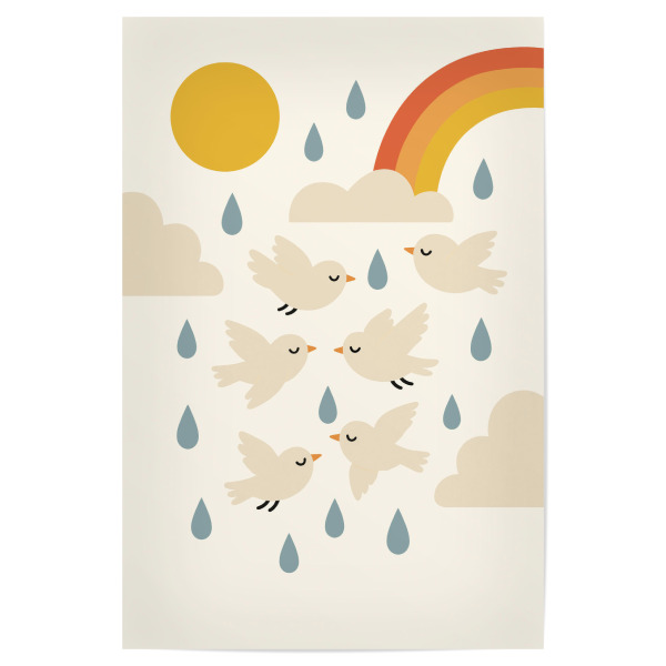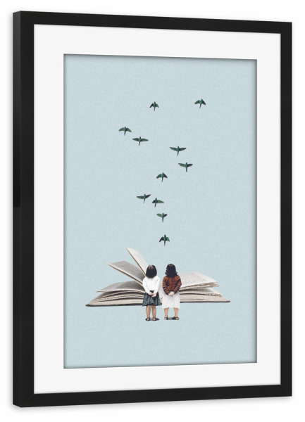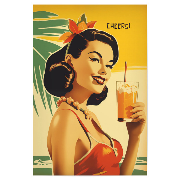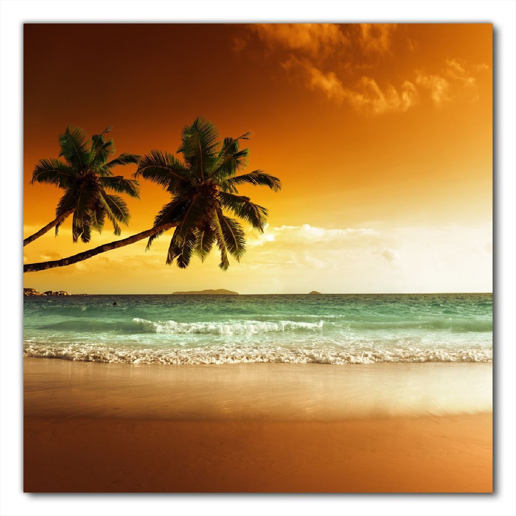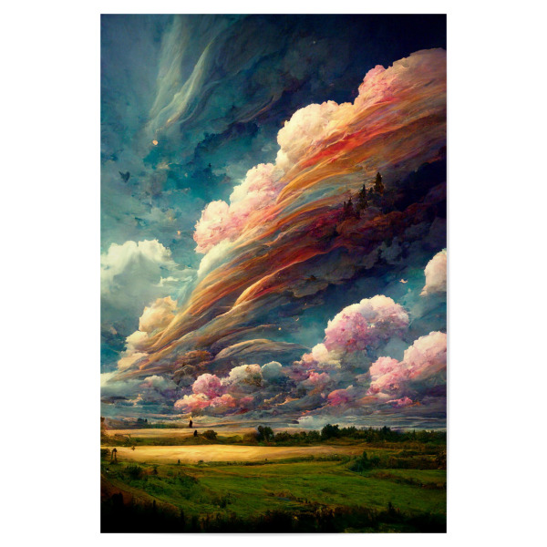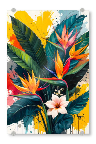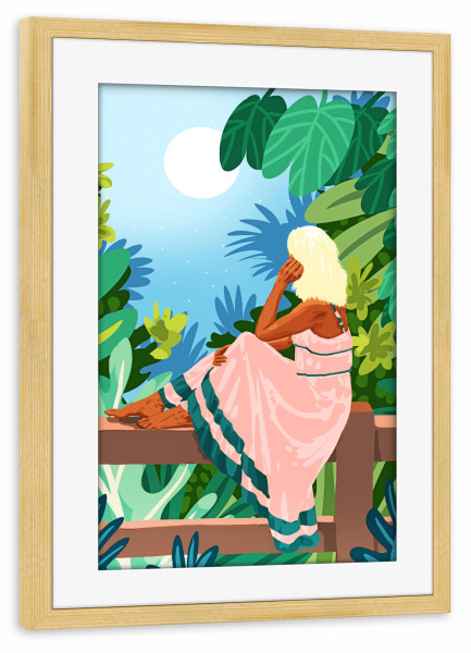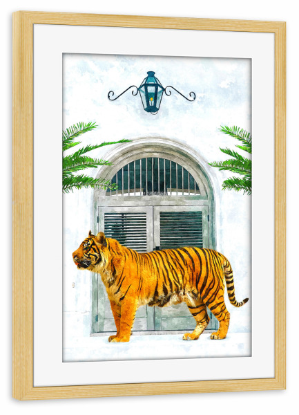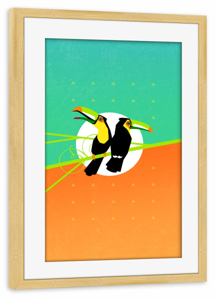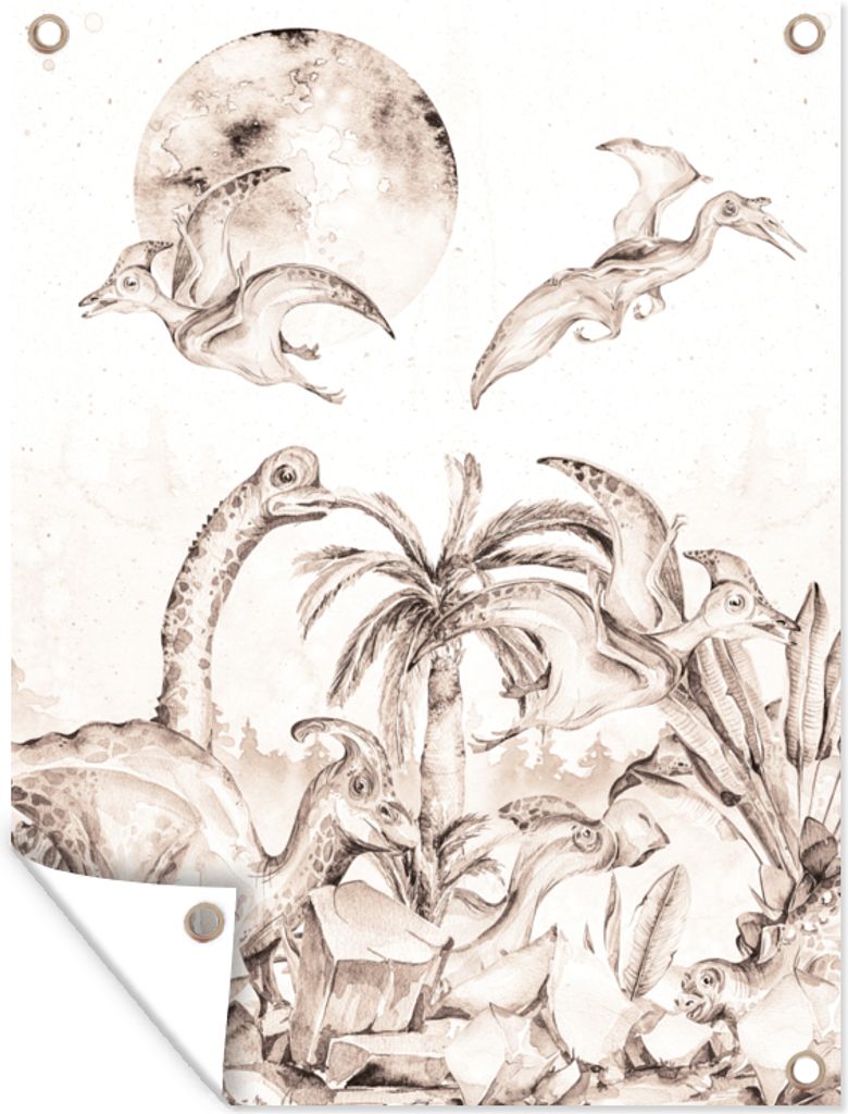 Poster - Poster ohne Rahmen - Palmen Herde Flamingos - 30x40 cm - Wand Bild - Wanddeko - Wandbilder - Kunstposter - Wandposter - Bilder - Kunstdruc...