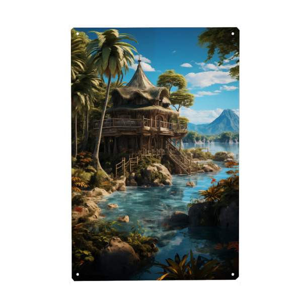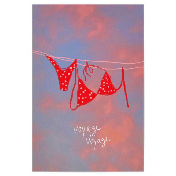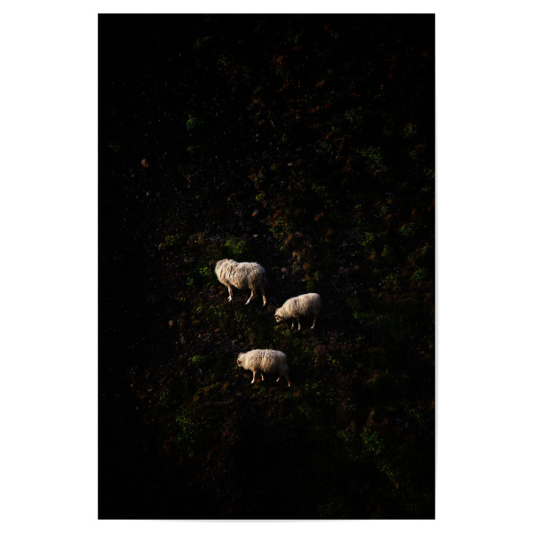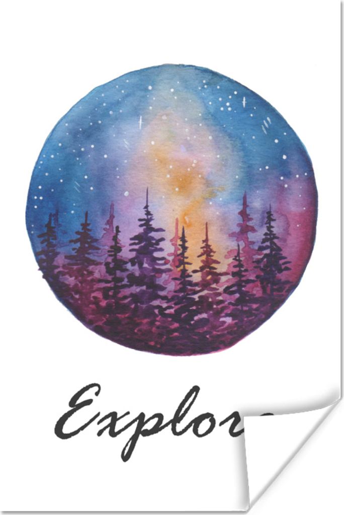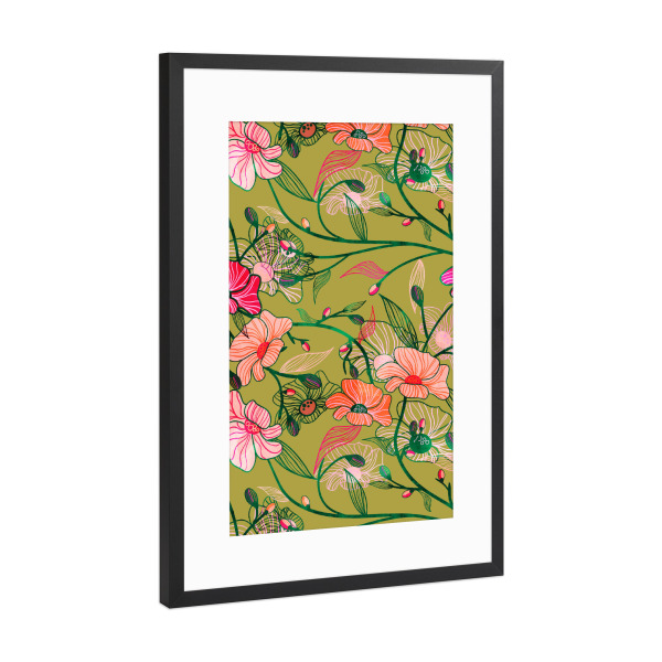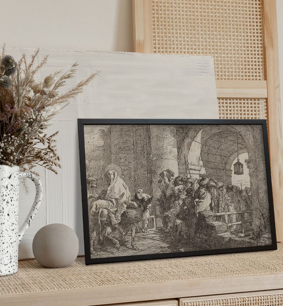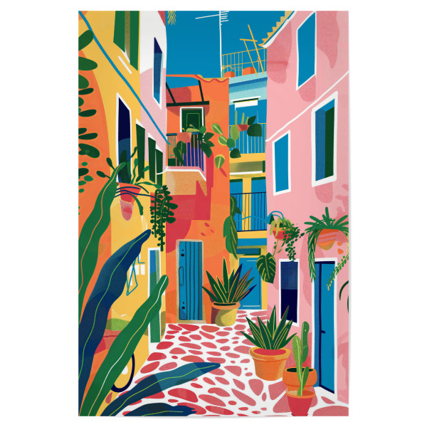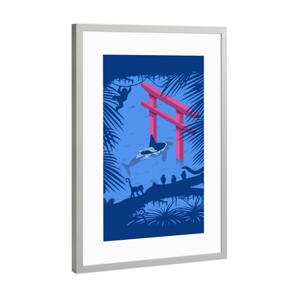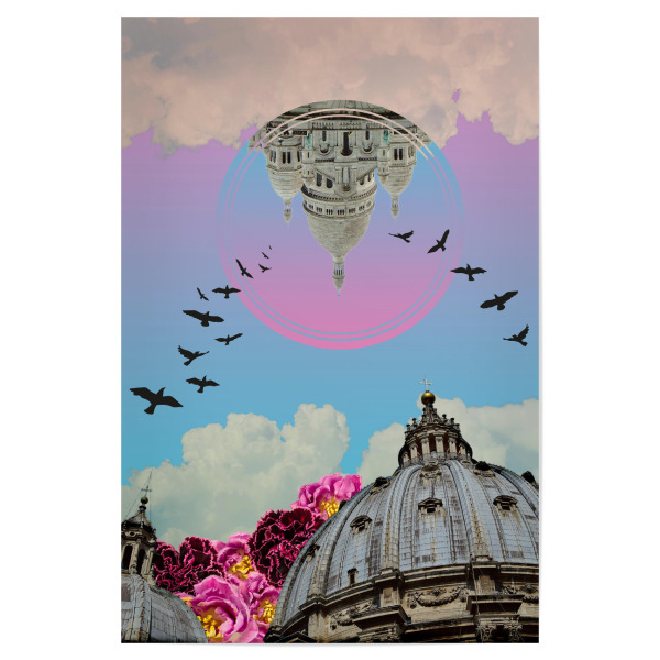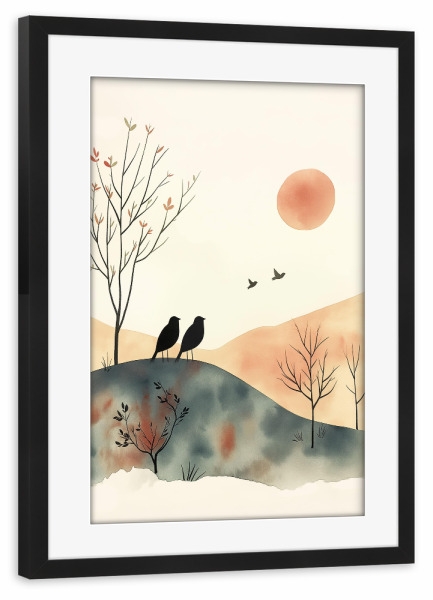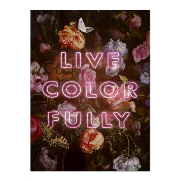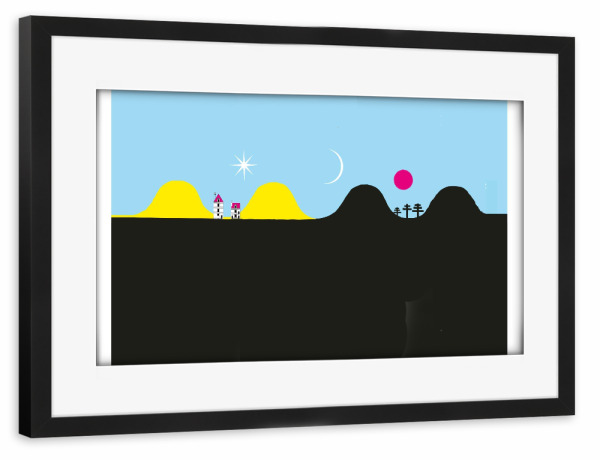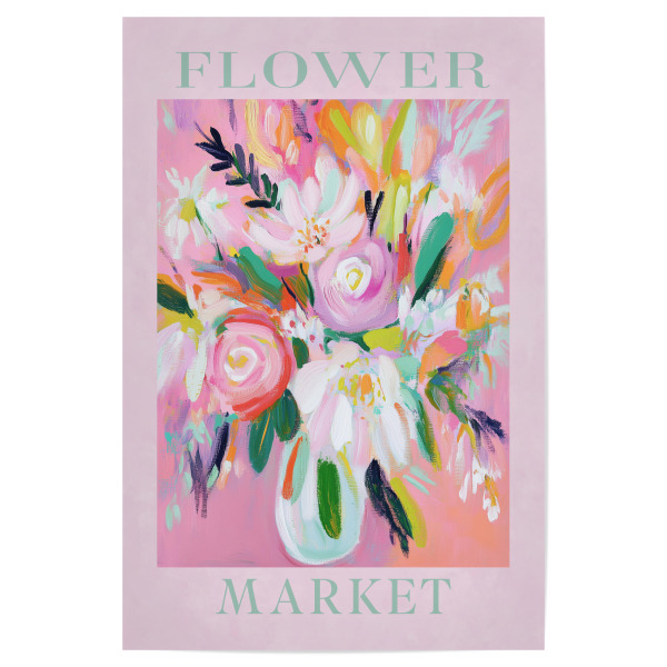 Poster - Poster ohne Rahmen - Palmen Herde Flamingos - 30x40 cm - Wand Bild - Wanddeko - Wandbilder - Kunstposter - Wandposter - Bilder - Kunstdruc...