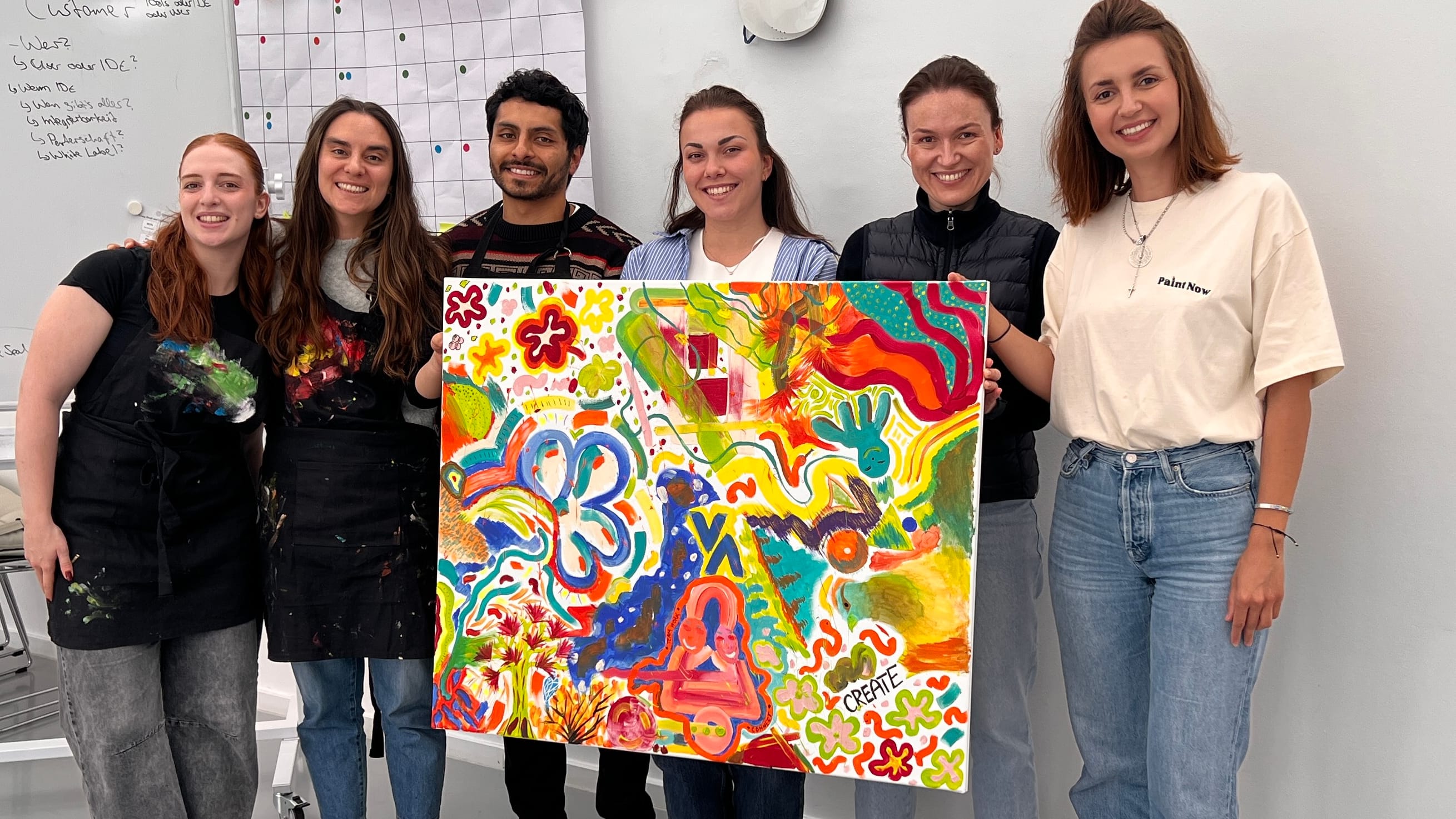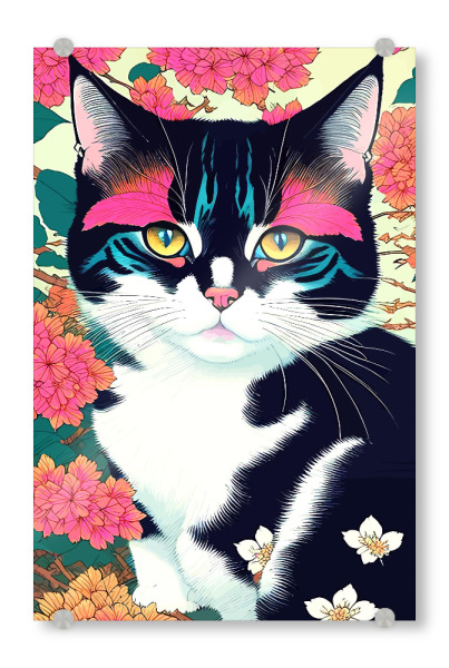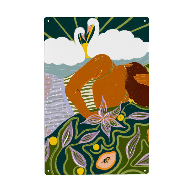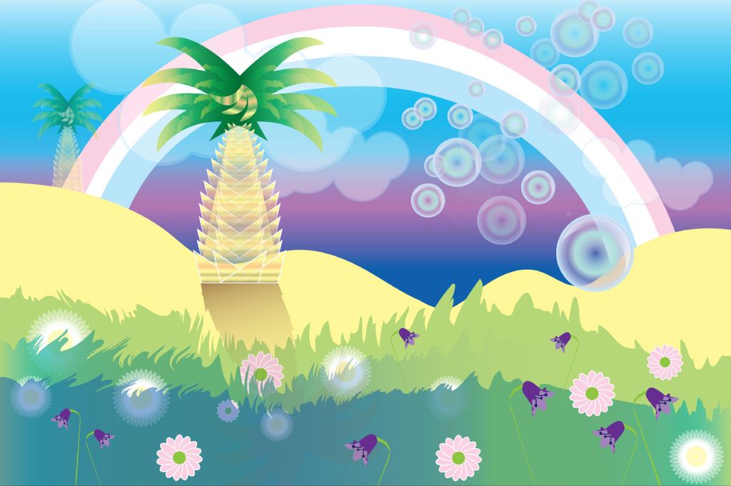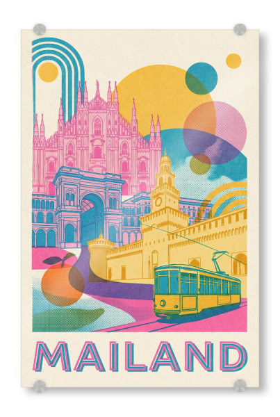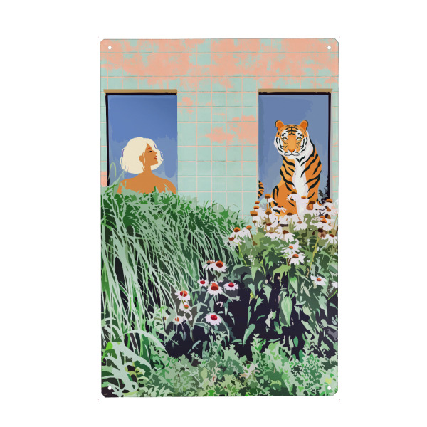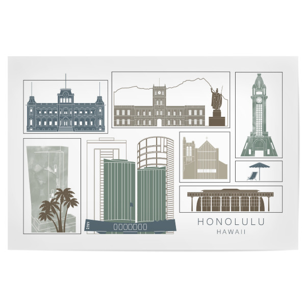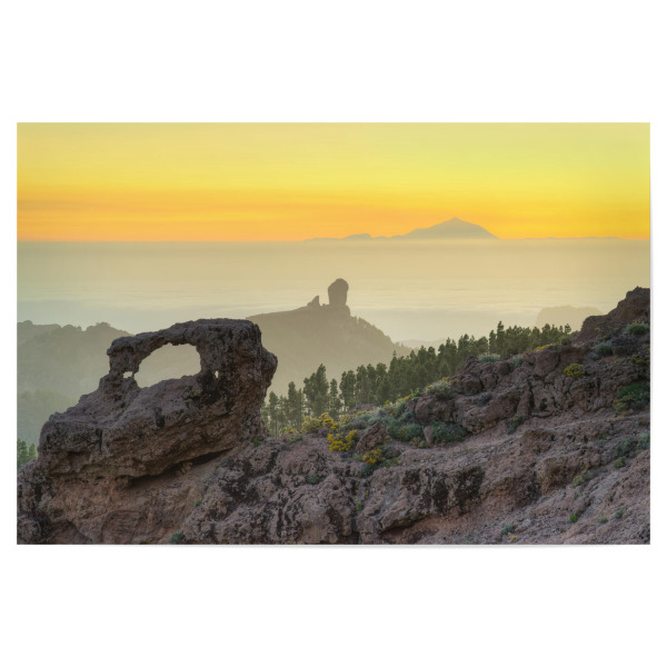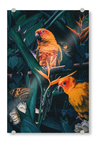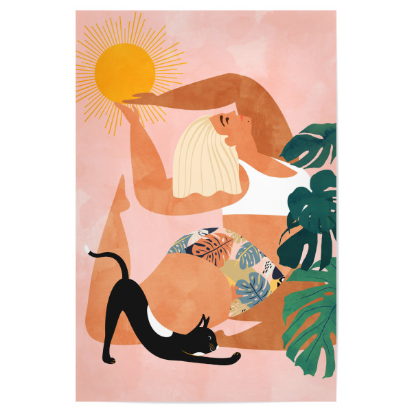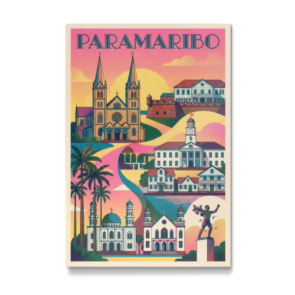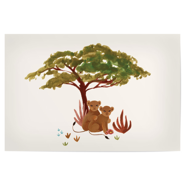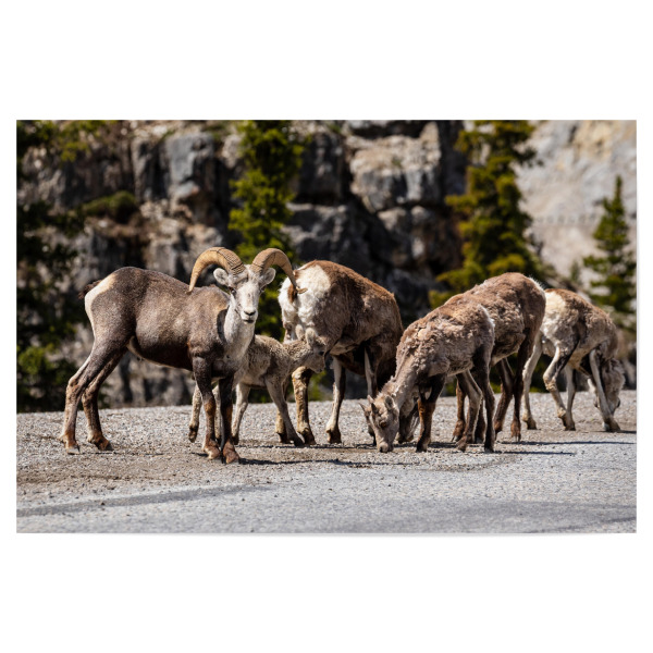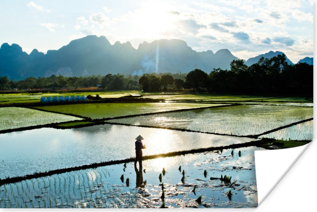 Poster - Poster ohne Rahmen - Palmen Herde Flamingos - 30x40 cm - Wand Bild - Wanddeko - Wandbilder - Kunstposter - Wandposter - Bilder - Kunstdruc...