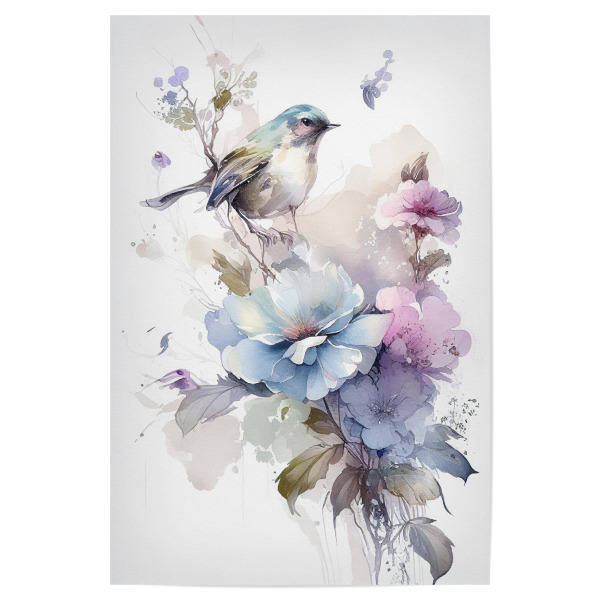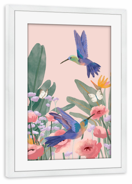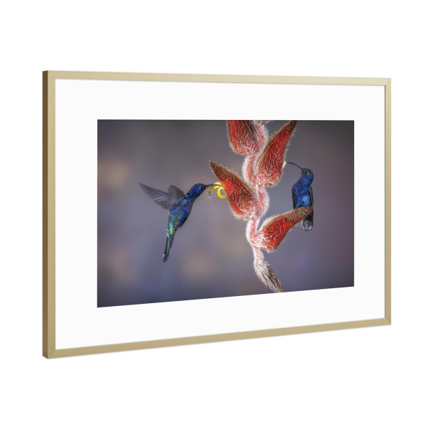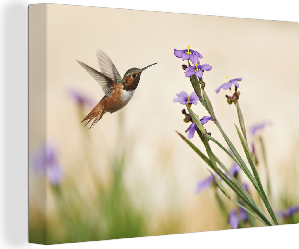 OneMillionCanvasses - Leinwandbilder - 150x100 cm, Vogel - Kolibri - Blumen - Lila, Wandbilder Kunstdruck Wanddekoration