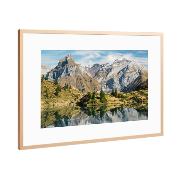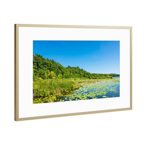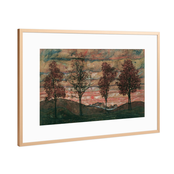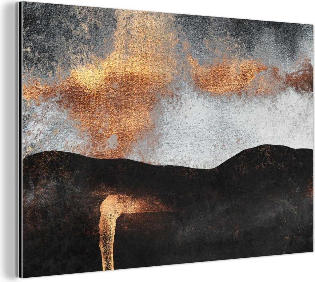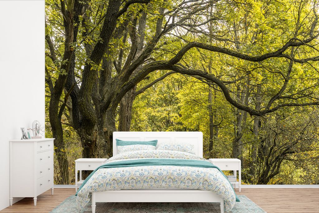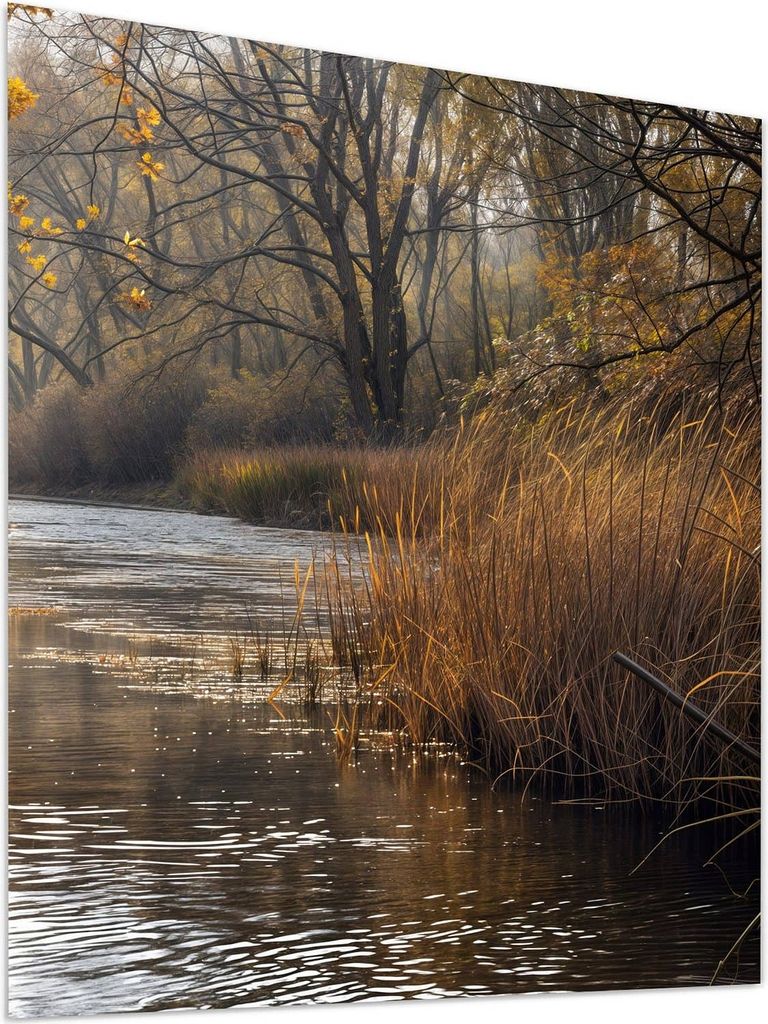 Aluminium-Bild gebürstet Gold Silber Kupfer ️ Gelber Birkenwald | Hochformat | wandbild.com 100 x 200
