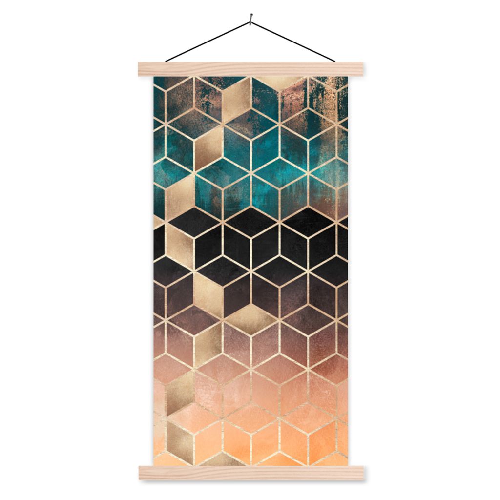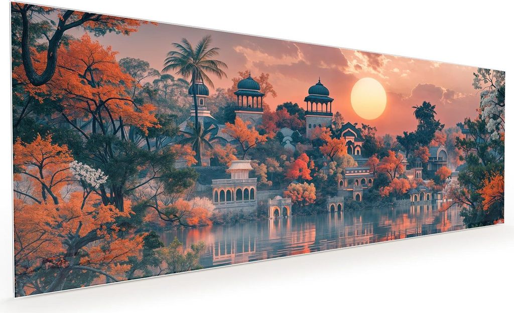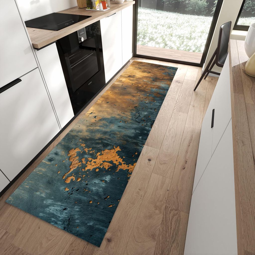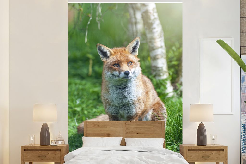 Aluminium-Bild gebürstet Gold Silber Kupfer ️ Gelber Birkenwald | Hochformat | wandbild.com 100 x 200