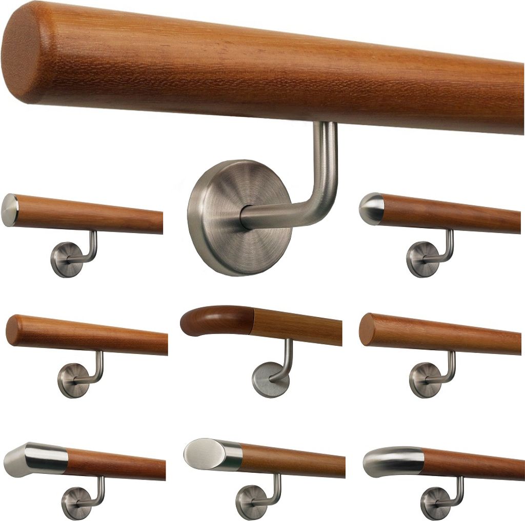 TIBU Nussbaum Handlauf Holz Geländer Treppe 30-500 cm,Variante: 150 cm mit 3 Halter Edelstahlecke