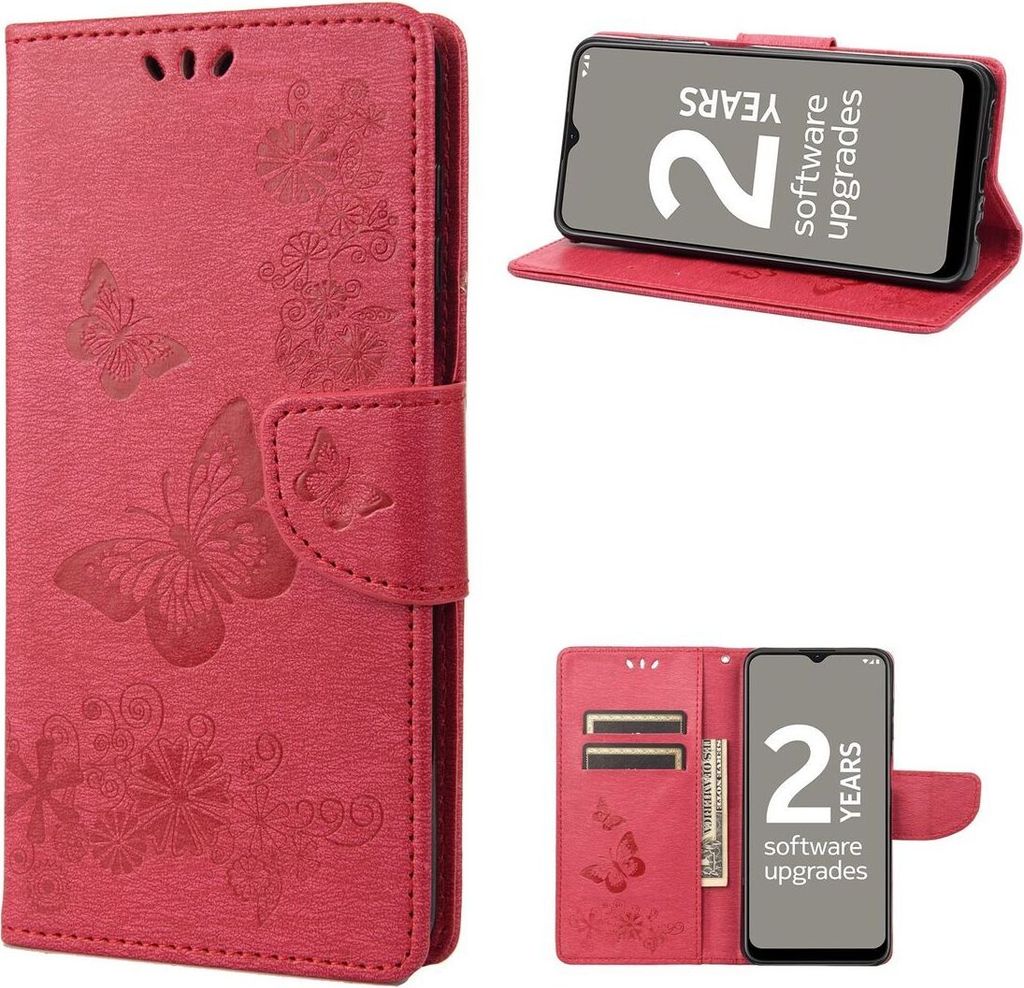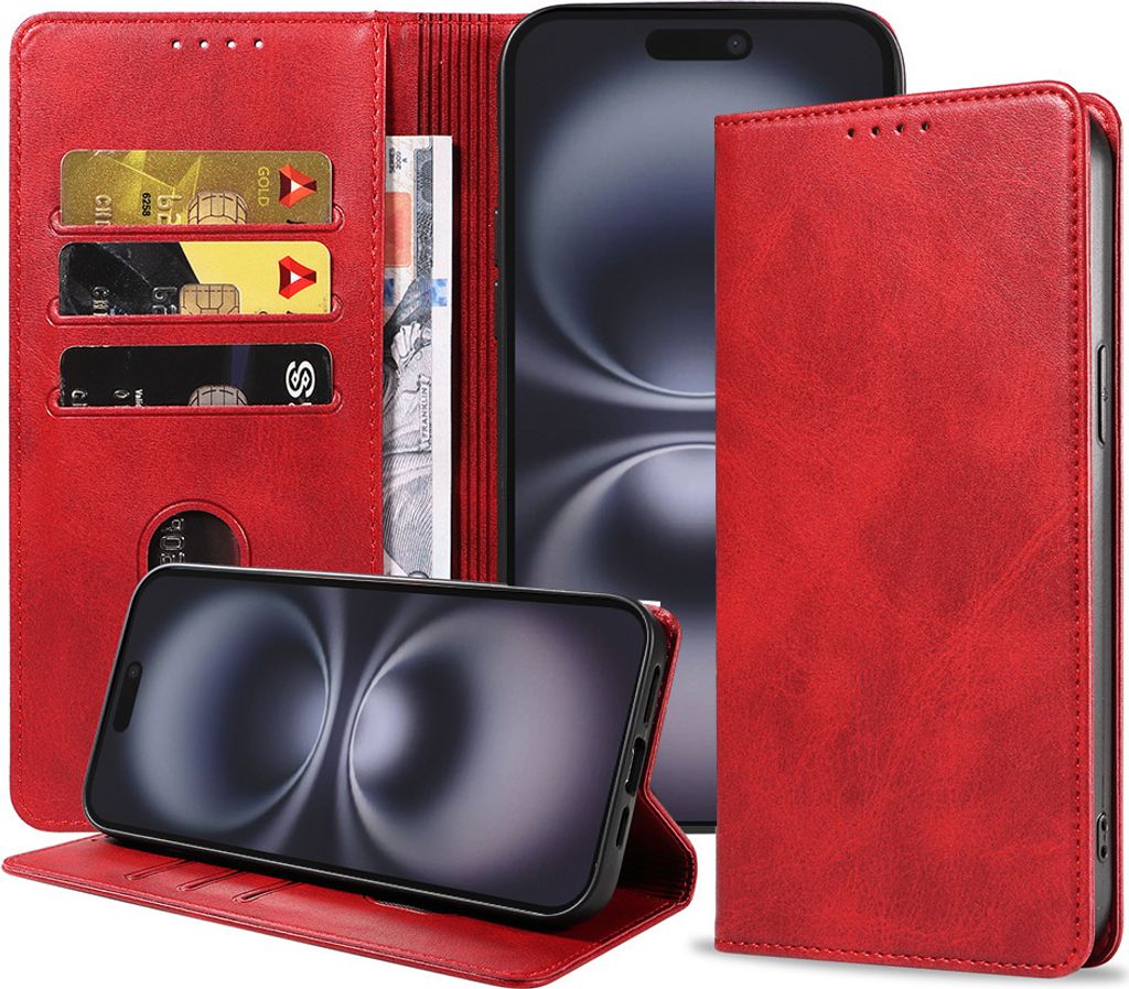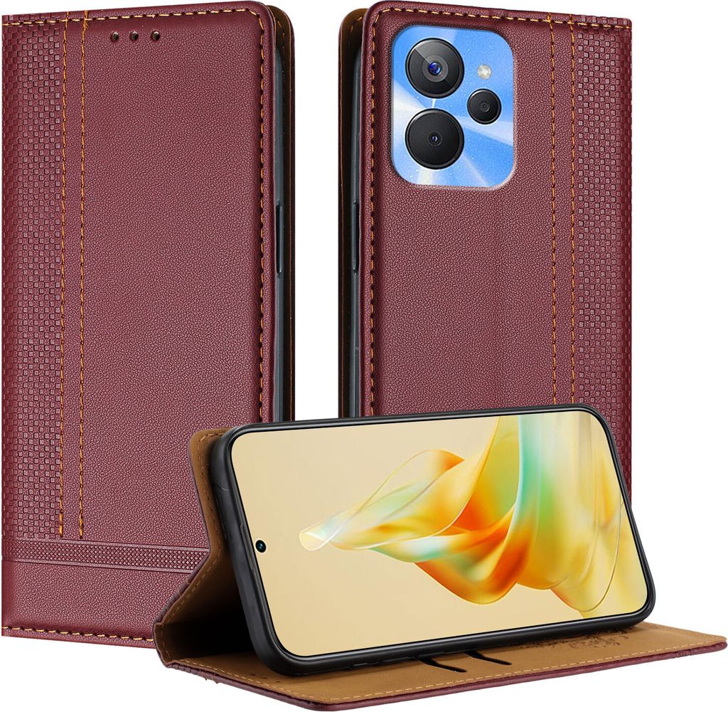 Handyhülle für Realme 10T Leder Flip Klappbare Schutzhülle mit Standfunktion Dunkelrot
