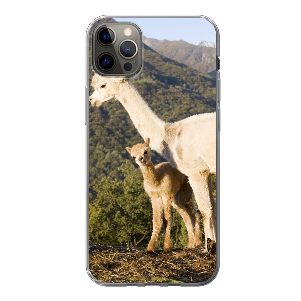 MuchoWow Handyhülle Schutzhülle Hülle für iPhone 12 Pro Max Alpakas - Berge - Natur Silikon Softcase Handy Hülle - Hartschale