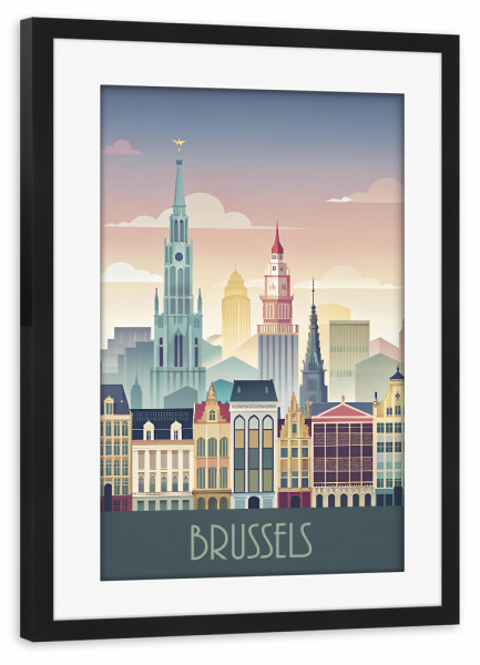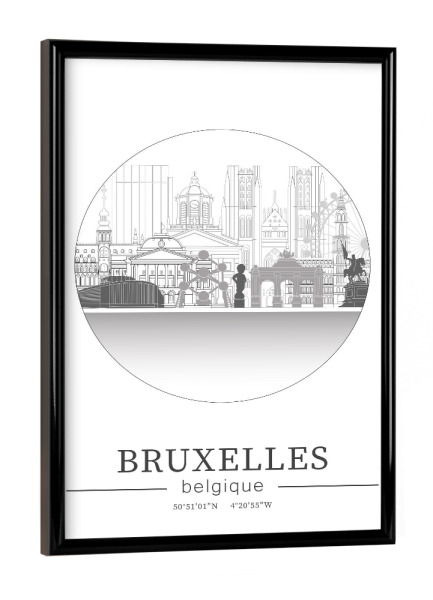 Poster mit schwarzem Rahmen "Brüssel, Belgien" artboxONE - Städte,Kartografie - Karte,Stadt,Straße,Plakat,Plan,Map,Street,Brüssel,Belgien