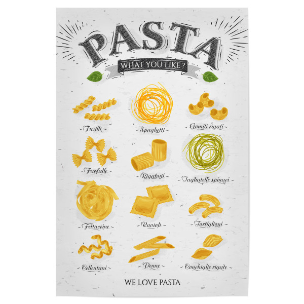 Poster mit schwarzem Rahmen "Pasta al dente, Streifen Chic" artboxONE - Typografie,Essen & Trinken,Geometrie