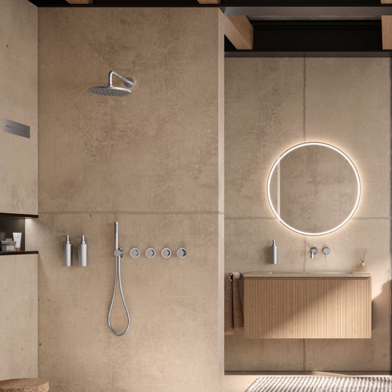 Gessi Duschsäule-Thermostat mit Antikalk-Kopfbrause messing gebürstet