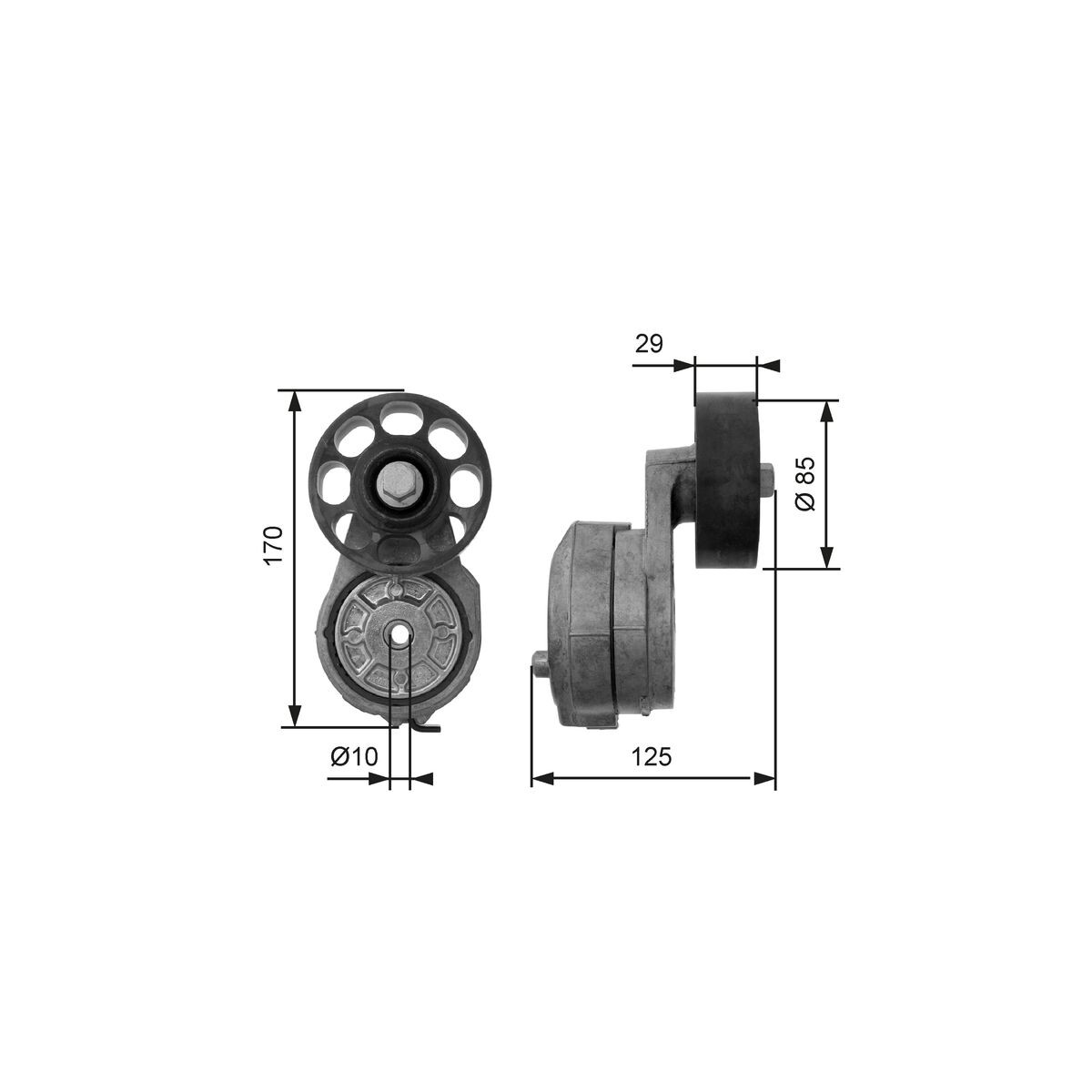 Set aus Metall-Balanceplatte 26 x 15 cm, Basis 60 cm und Kolbenzylinder, Gas, für Bürostühle, silber, 35 cm