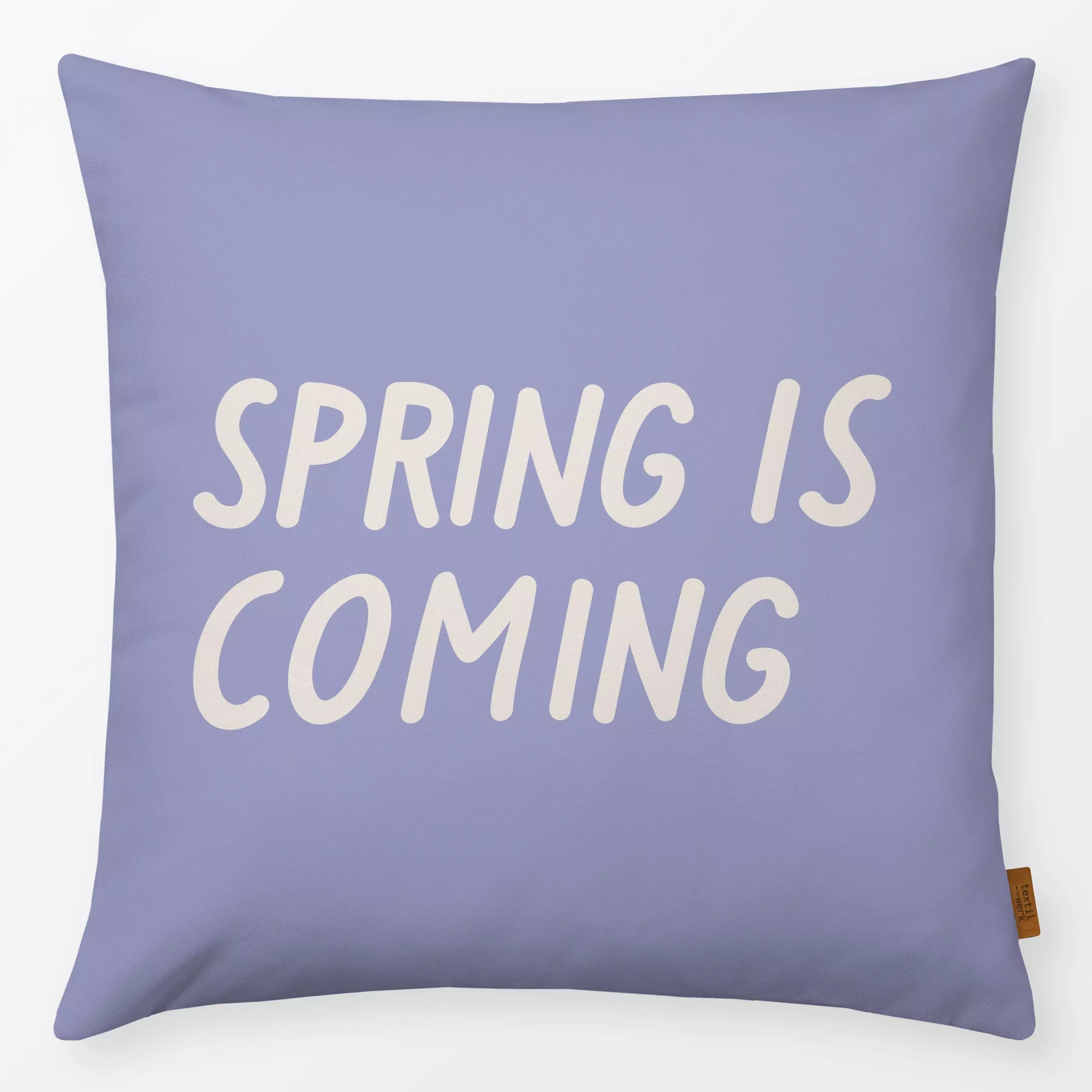Kissen Spring is coming - Sprüche & Schriftzüge - von „Jana Driver"; typografie, lila, violett, hellospring, springiscoming