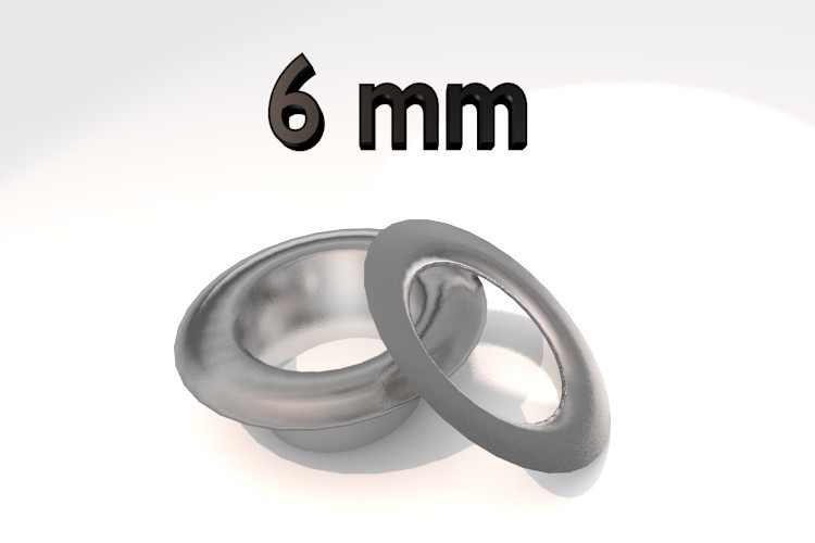 Ösen für Hand Ösenpresse BB-XOEP, Stahl vernickelt, Pack mit 100 Stück 6 mm, Eisen