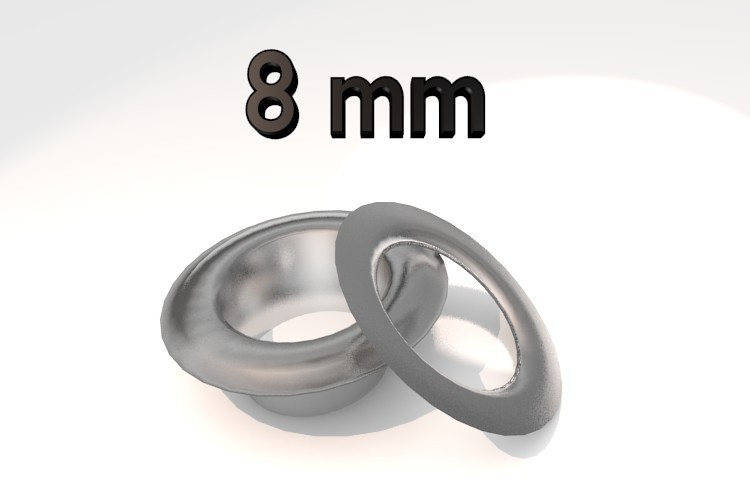 Ösen für Hand Ösenpresse BB-XOEP, Stahl vernickelt, Pack mit 100 Stück 8 mm, Eisen