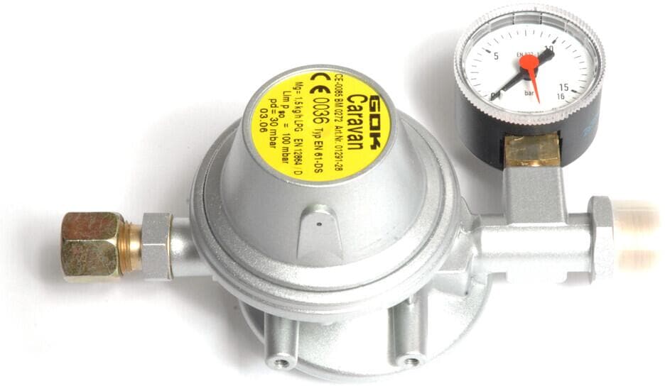 GOK Niederdruckregler EN61-DS - 50mbar - 1,5kg/h - Manometer, Überdruckventil