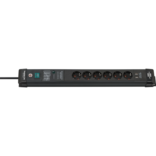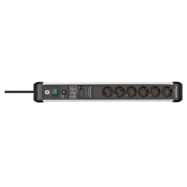 Brennenstuhl Premium-Line Steckdosenleiste 6-fach mit Überspannungsschutz bis zu 60.000A (Mehrfachsteckdose mit Schalter 3m Kabel 2-fach