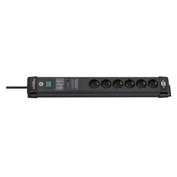 Brennenstuhl Premium-Line Steckdosenleiste mit Überspannungsschutz bis zu 26.000A, 6-Fach, 1,8m Kabel, Wandmontage, schwarz (1951160400)