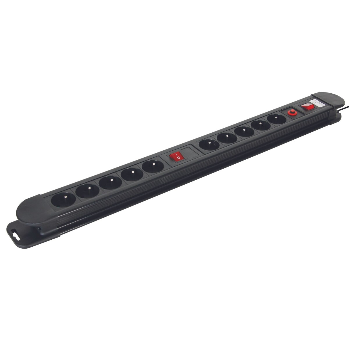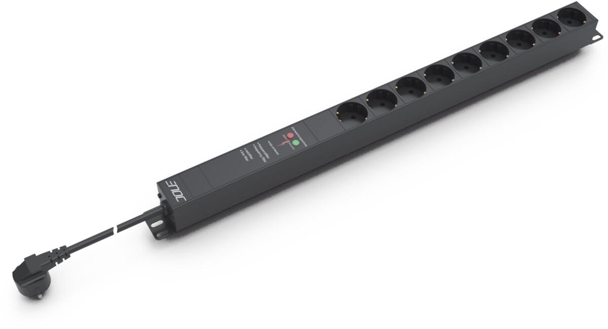 Enoc Steckdosenleiste, 9-fach, 1 HE, Aluminiumgehäuse, Überspannungsschutz, Netzschutzfilter, Anschlußleitung 3,0 meter, Schukostecker, schwarz (EPK 0
