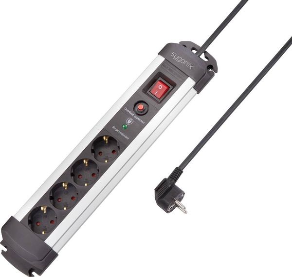 Sygonix SY-4755610 Überspannungsschutz-Steckdosenleiste 4fach Silber, Schwarz Schutzkontakt 1 St.