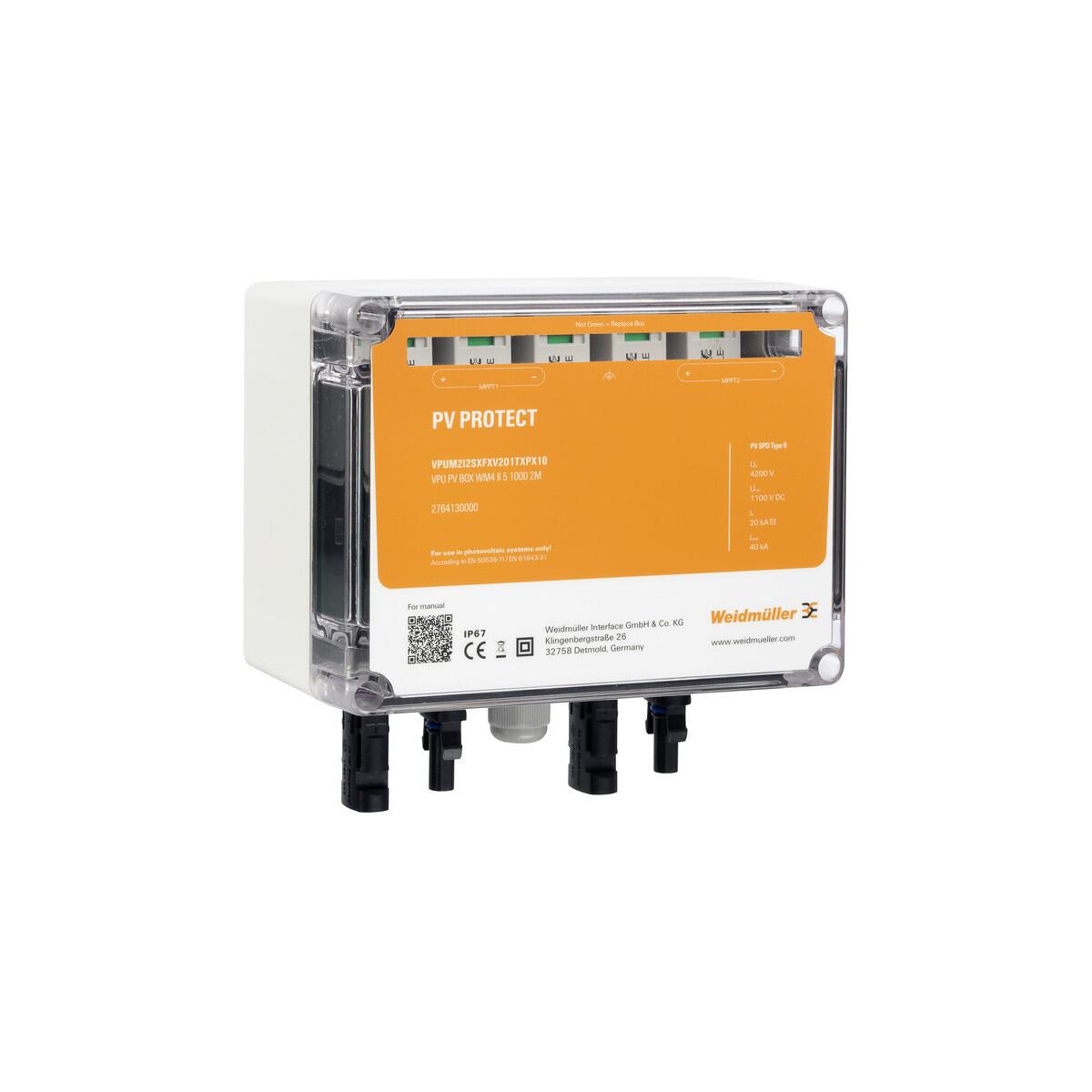 Weidmüller VPUM2I2SXFXV2O1TXPX10 Photovoltaik Überspannungsschutz, 2 MPP, Überspannungsschutz II, Verschraubung, Steckverbinder WM4C, 1000 V (27641300