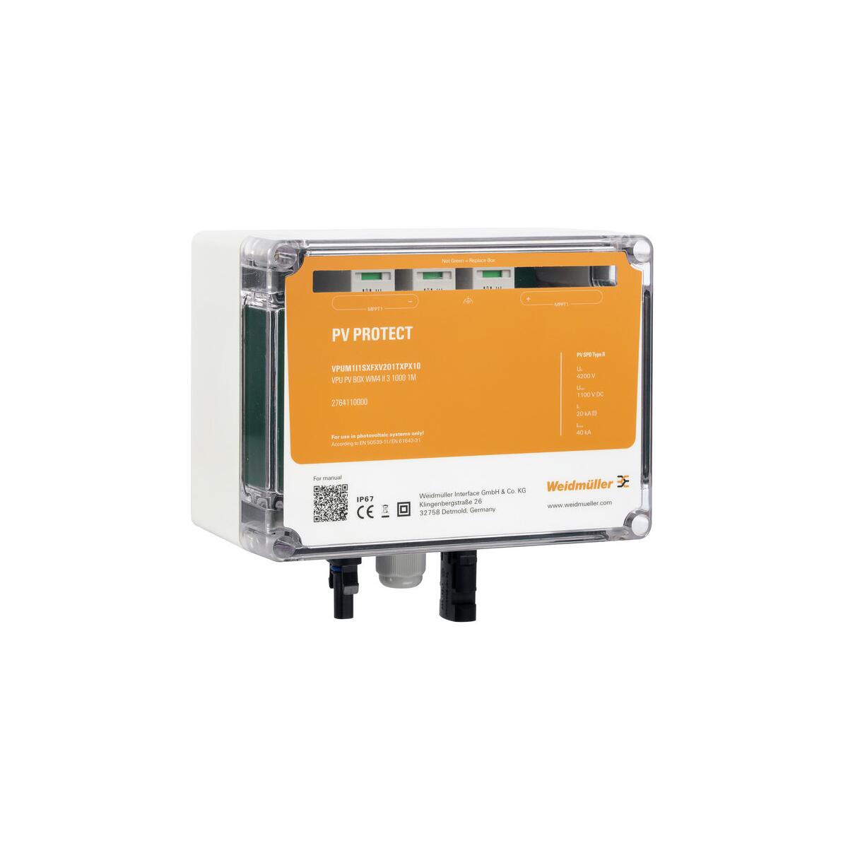 Weidmüller VPUM1I1SXFXV2O1TXPX10 Photovoltaik Überspannungsschutz, 1 MPP, Überspannungsschutz II, Steckverbinder WM4C, 1000 V (2764110000)