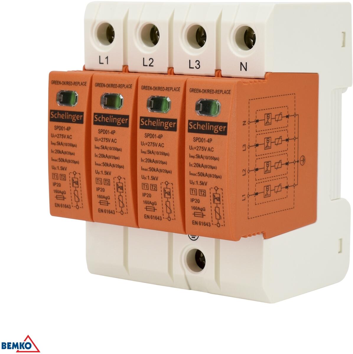 Schelinger Überspannungsschutz, 4-polig, 5kA (10/350), Typ 1+2 (A51-SPD01-4P-B+C)
