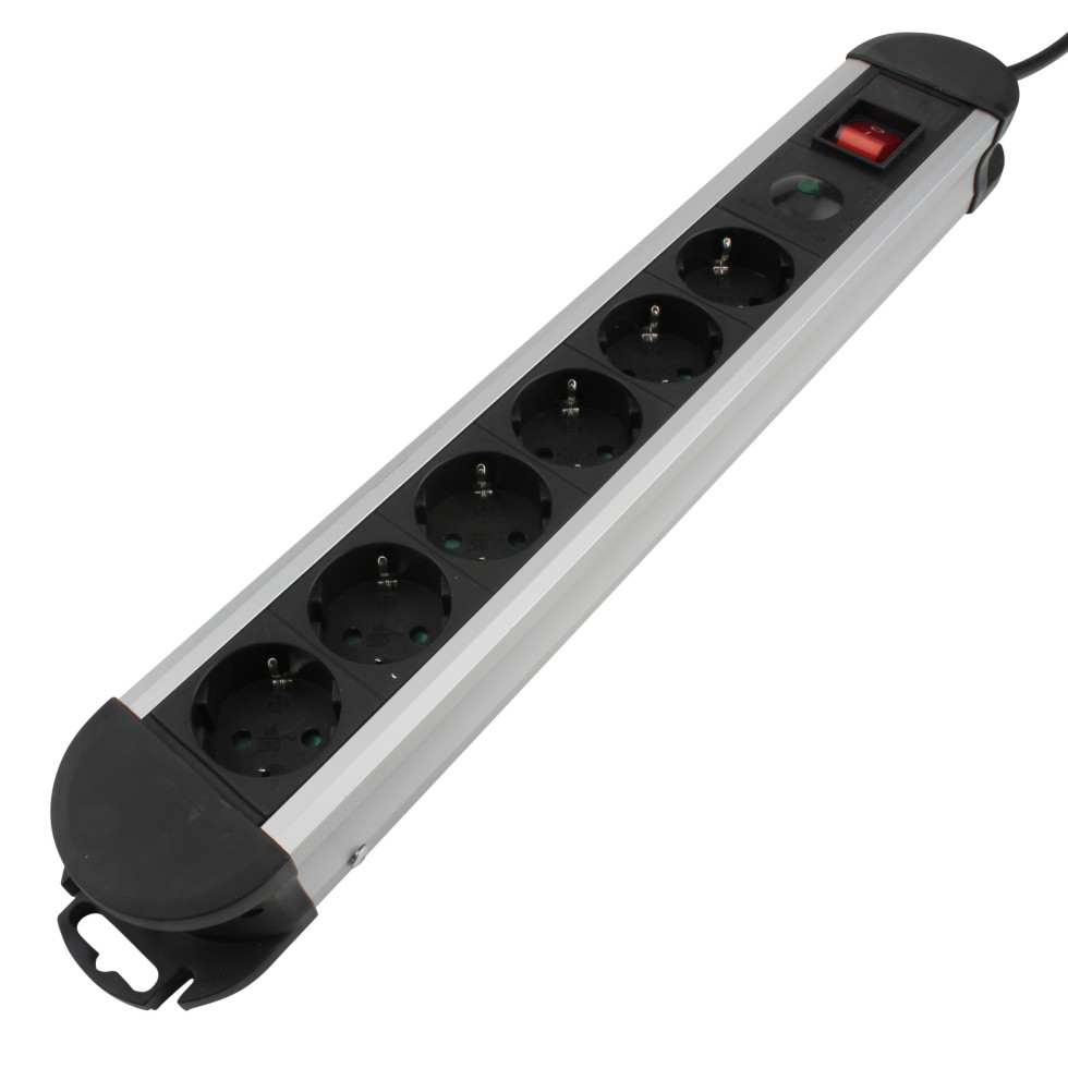 Perel Steckdosenleiste mit Schalter und Überspannungsschutz, 6 geerdete Steckdosen (Typ E) mit