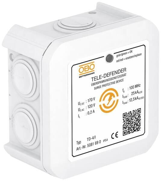 OBO Bettermann TD-4/I Überspannungsschutzgerät für TK-Anlagen, 170V, Typ 3, weiß (5081690)