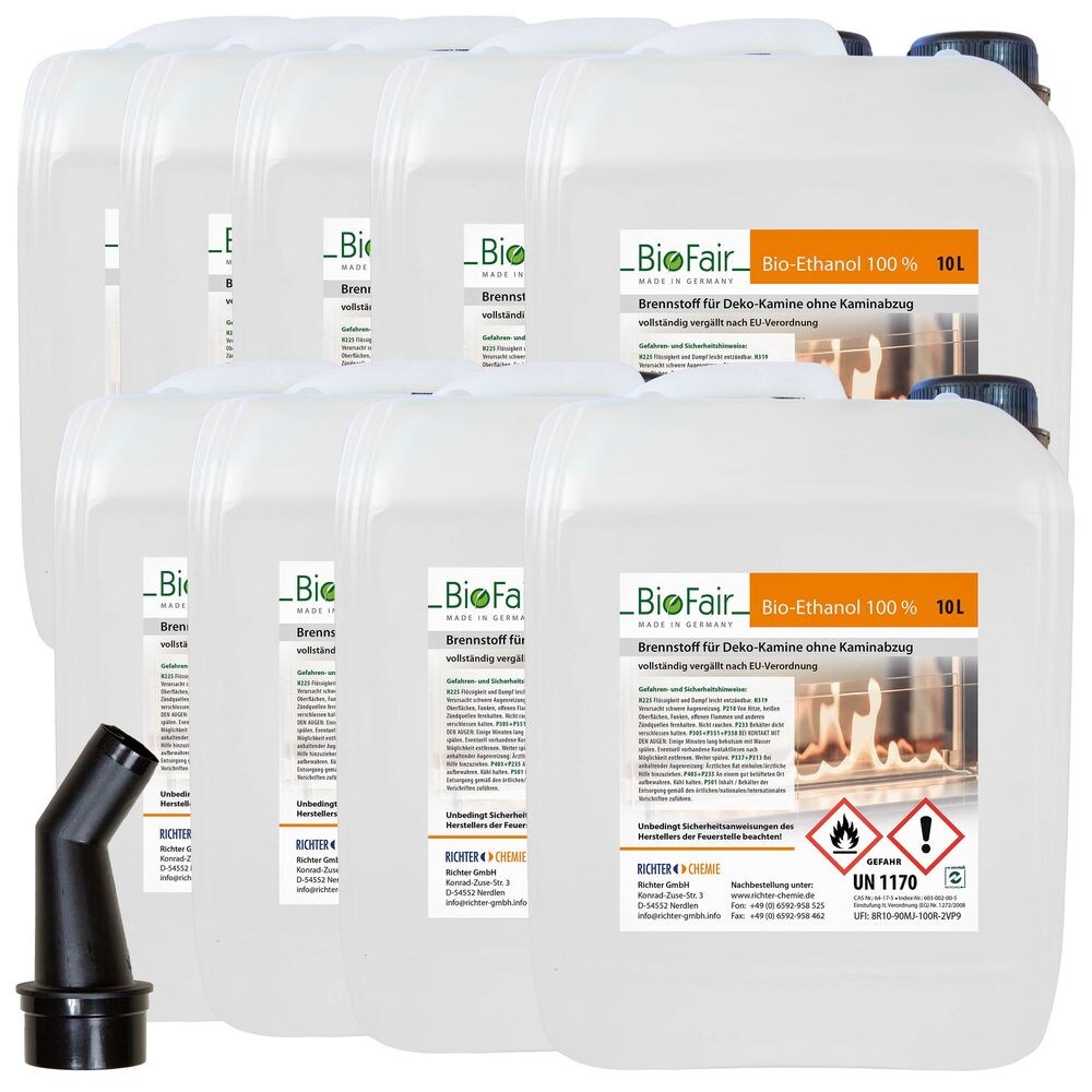 Bioethanol 100% im 10-Liter-Kanister für Ethanol-Kamine-9 x 10 Liter