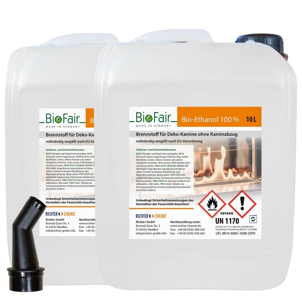 20 LIter Bioethanol 100% im 10-Liter-Kanister für Ethanol-Kamine-2 x 10 Liter