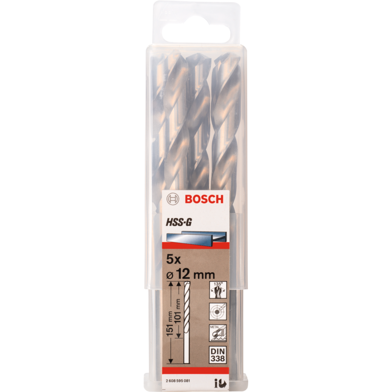Bosch Professional PRO Metal HSS-G Spiralbohrer, Ø 12mm Bohrer, 5 Stück