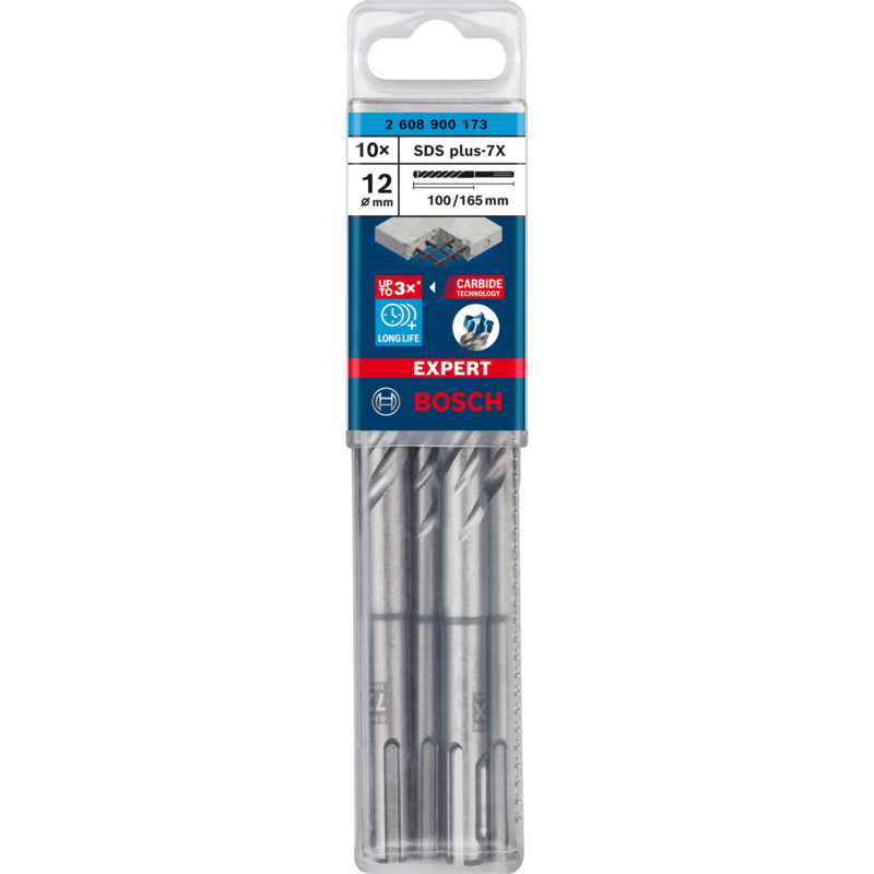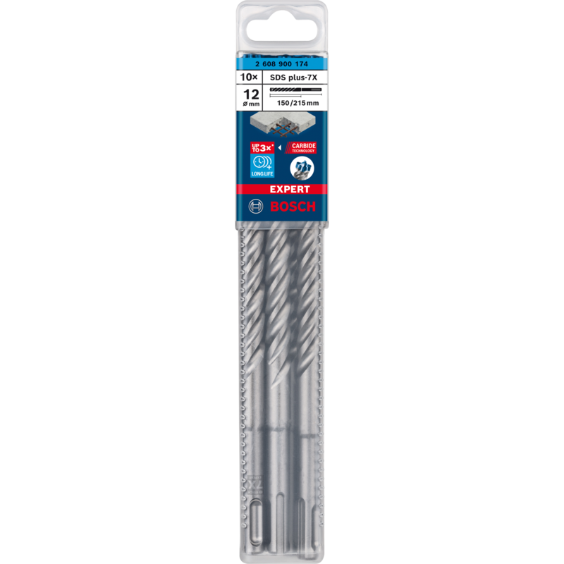 Bosch Professional EXPERT Hammerbohrer SDS-plus-7X, Ø 12mm, 10 Stück Bohrer