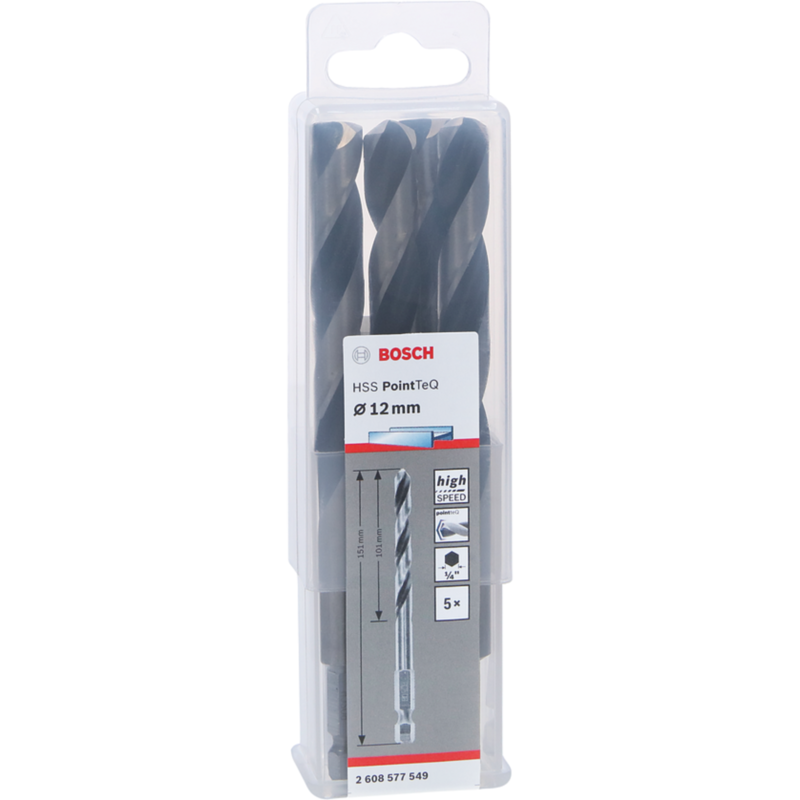 Bosch Professional HSS-Spiralbohrer PointTeQ Hex, Ø 12mm Bohrer, 5 Stück