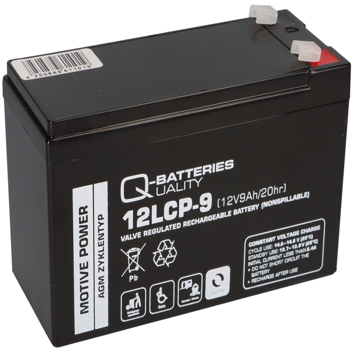 Q-Batteries 12LCP-9 / 12V - 9Ah Blei Akku Zyklentyp AGM - Deep Cycle VRLA