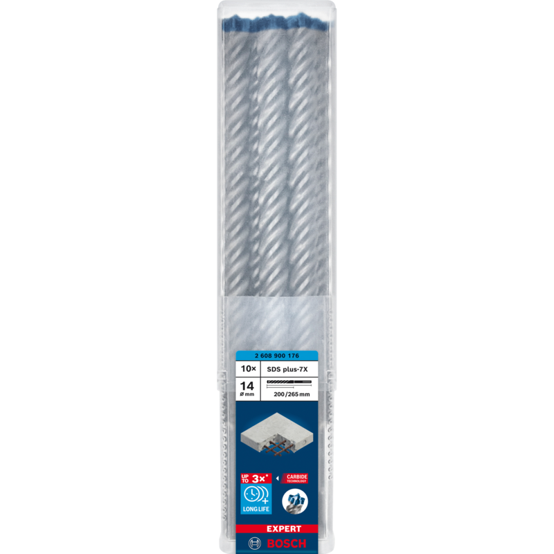 Bosch Professional EXPERT Hammerbohrer SDS-plus-7X, Ø 14mm, 10 Stück Bohrer