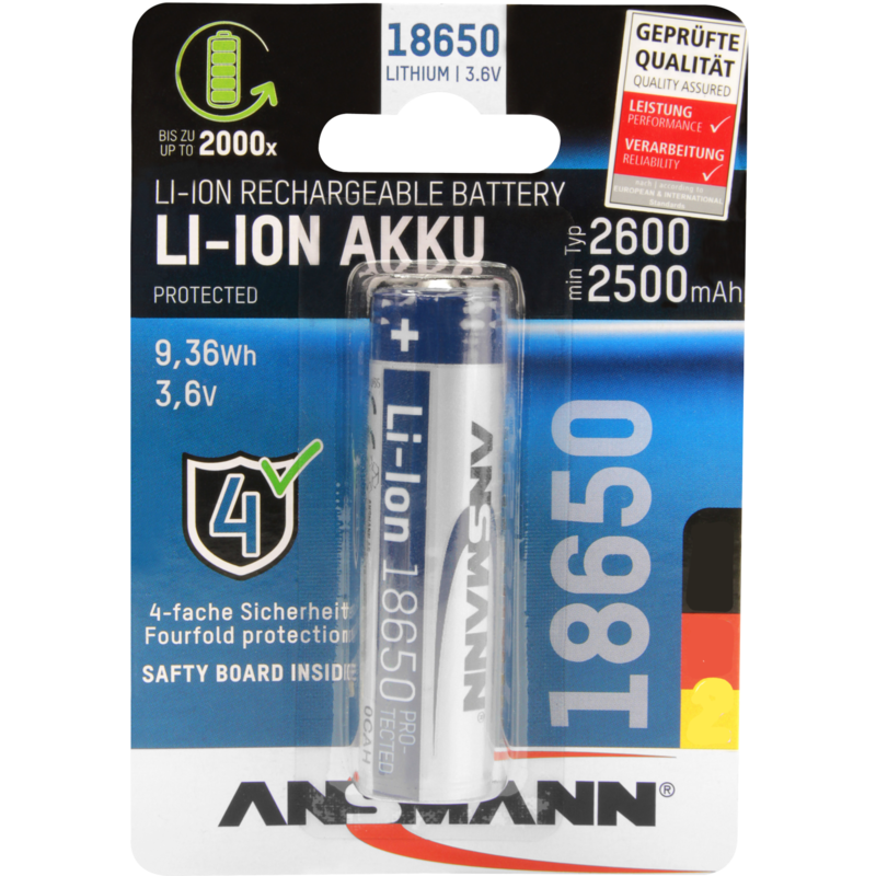 Ansmann 1307-0002 Haushaltsbatterie Wiederaufladbarer Akku 18650 Lithium-Ion (Li-Ion)
