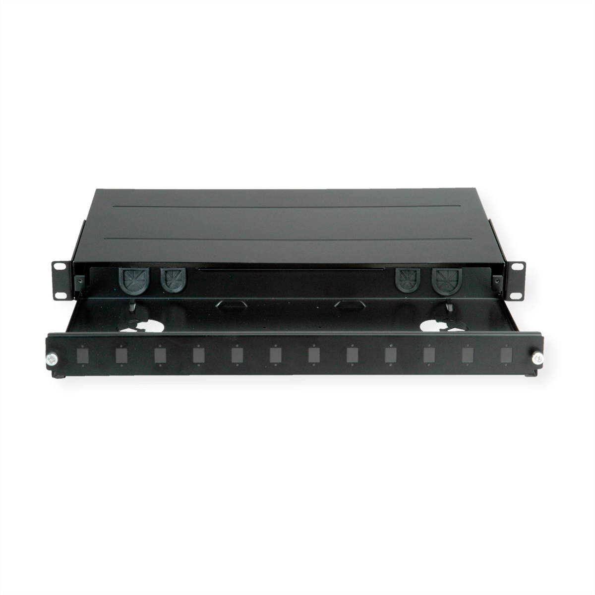 ROLINE 19''-LWL-Gehäuse leer, 1 HE, 12x SC-Simplex oder LC-Duplex, schwarz