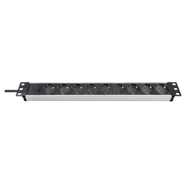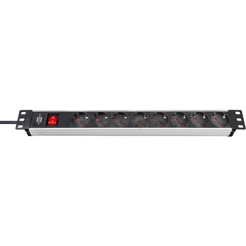 Brennenstuhl Alu-Line 19 Zoll Steckdosenleiste / Steckerleiste 8-fach für Schaltschränke (Mehrfachsteckdose 19 Zoll mit 10A