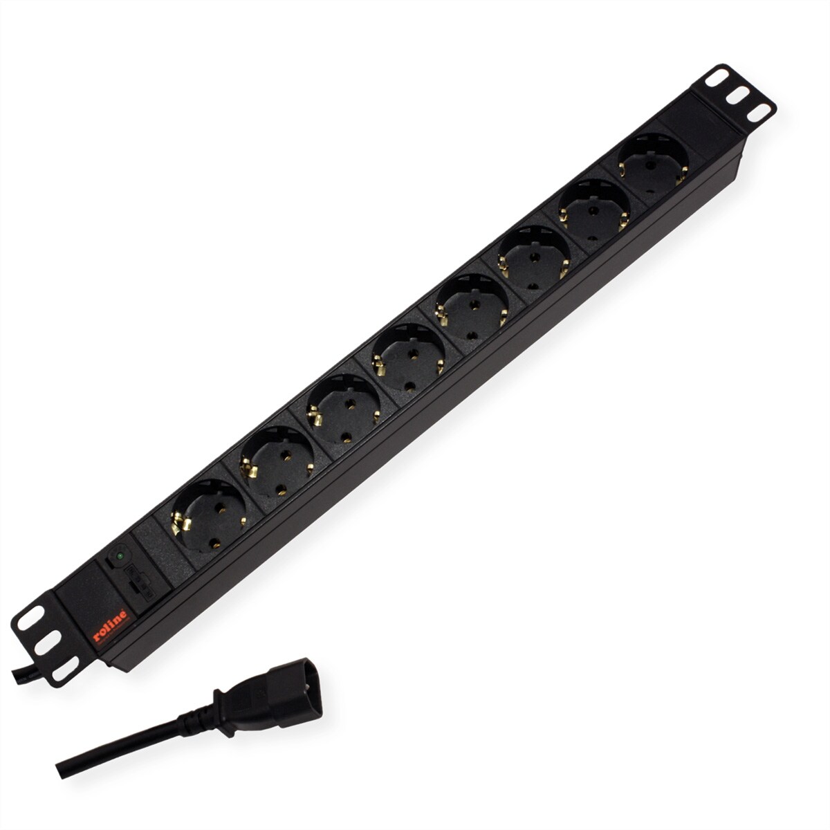 ROLINE 19-Zoll-Steckdosenleiste 8fach C13, Schutzkontakt-Stecker, Aluminium, 2 m