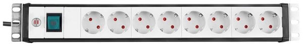 19-Zoll-8-fach-Steckdosenleiste ohne Schalter mit Schutzkontakt