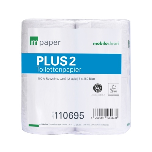 8x Toilettenpapier WC-Papier Ø10,5 cm 2-lagig 250 Blatt