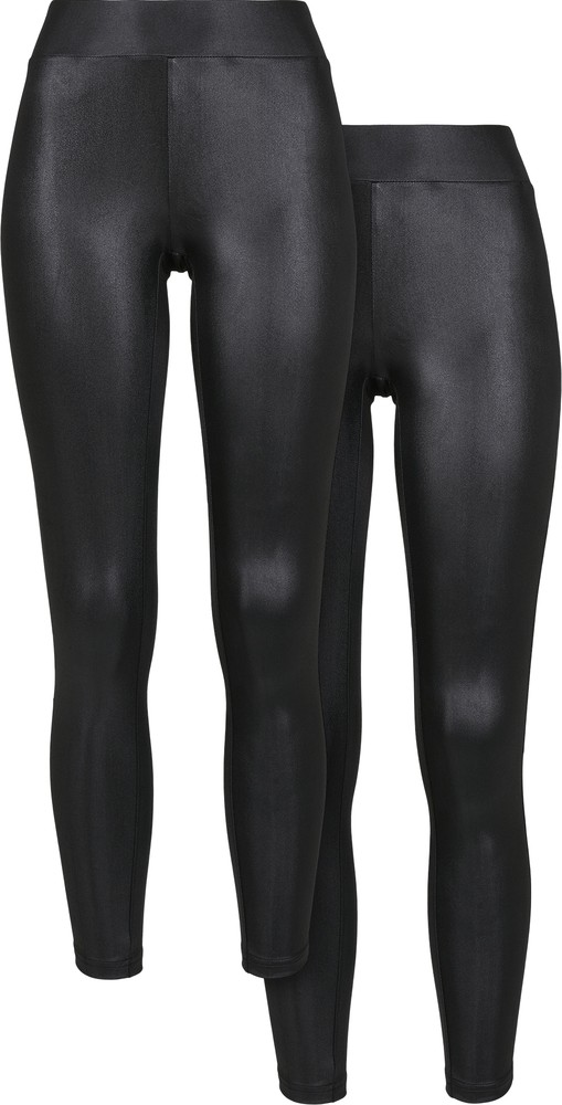 Urban Classics Damen Ladies Faux Leather High Waist Leggings 2-Pack - Damen