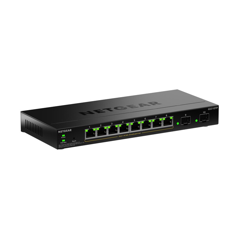NETGEAR S350 Series 8-Port Gigabit Ethernet PoE+ Smart Managed Essentials Switch mit 2 Dedicated SFP Ports