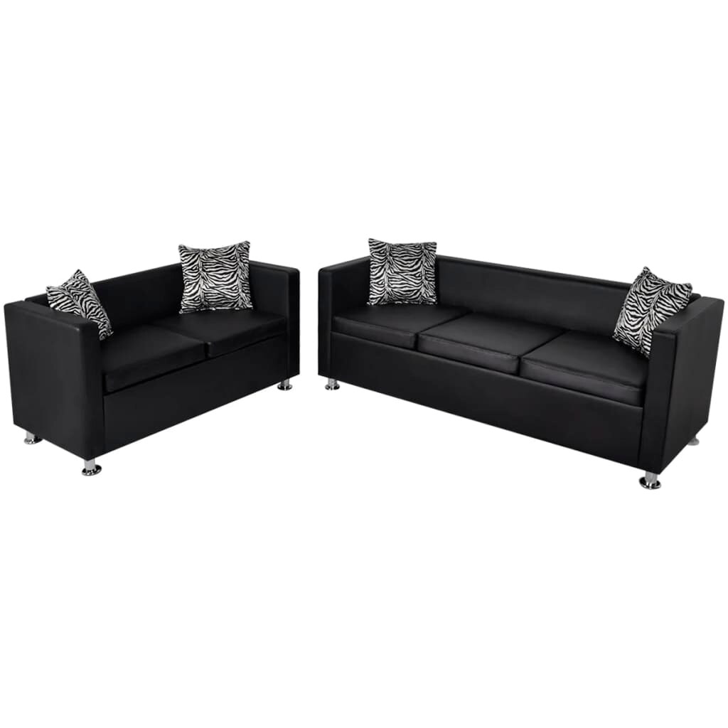 vidaXL Sofa-Set Kunstleder 3-Sitzer und 2-Sitzer Schwarz
