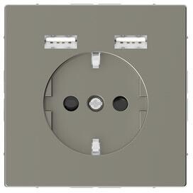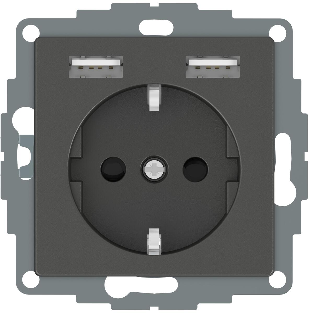 Merten MEG2366-0414 Schuko-Steckdosen-Einsatz mit USB Ladegerät 2,4 A, System M, anthrazit