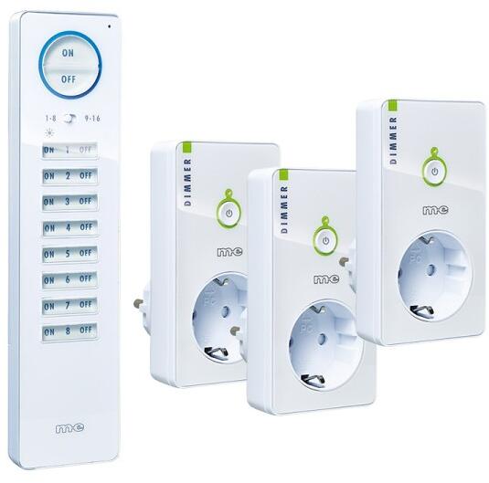 M-E CUVEO Starterset 2, 1x Fernbedienung, 3x Steckdosen Dimmer, Weiß